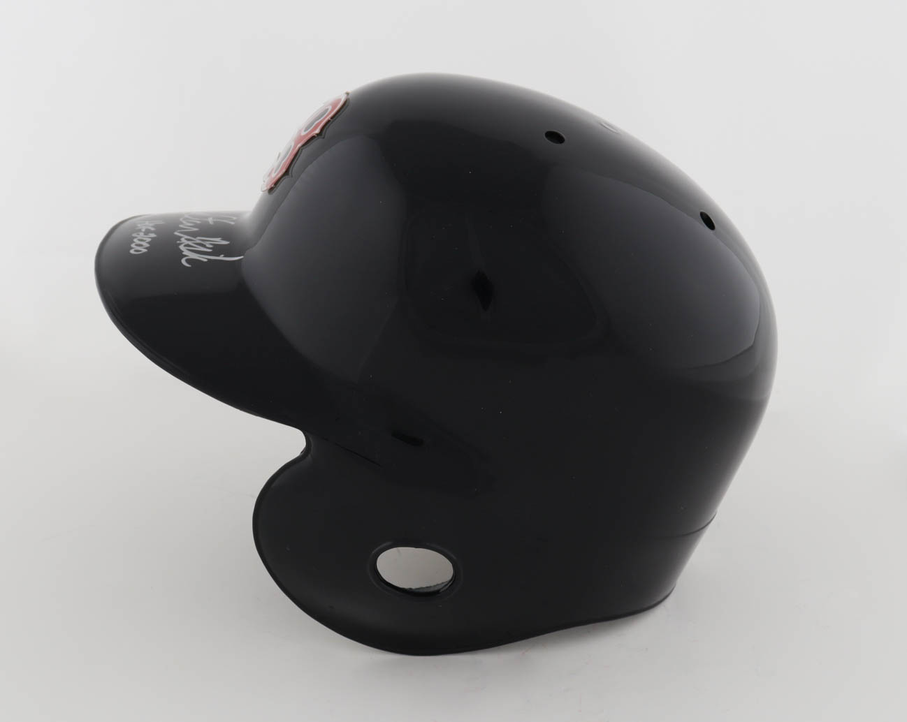 Rawlings Boston Red Sox full-size batting helmet. Hand-signed and inscribed by Carlton Fisk (HOF).