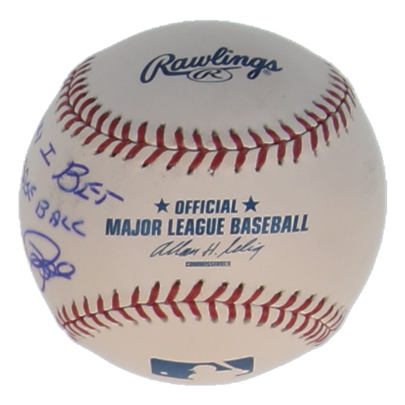Rawlings Official Major League Baseball. Hand-signed and inscribed by Pete Rose (Cincinnati Reds). Please note, the autograph ink has bled and there is scuffing on the baseball.