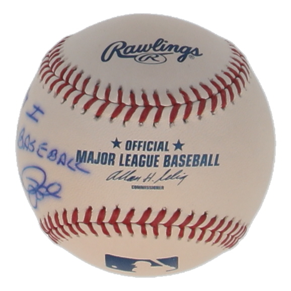 Rawlings Official Major League Baseball. Hand-signed and inscribed by Pete Rose (Cincinnati Reds). Please note, the autograph ink has bled and there is scuffing on the baseball.
