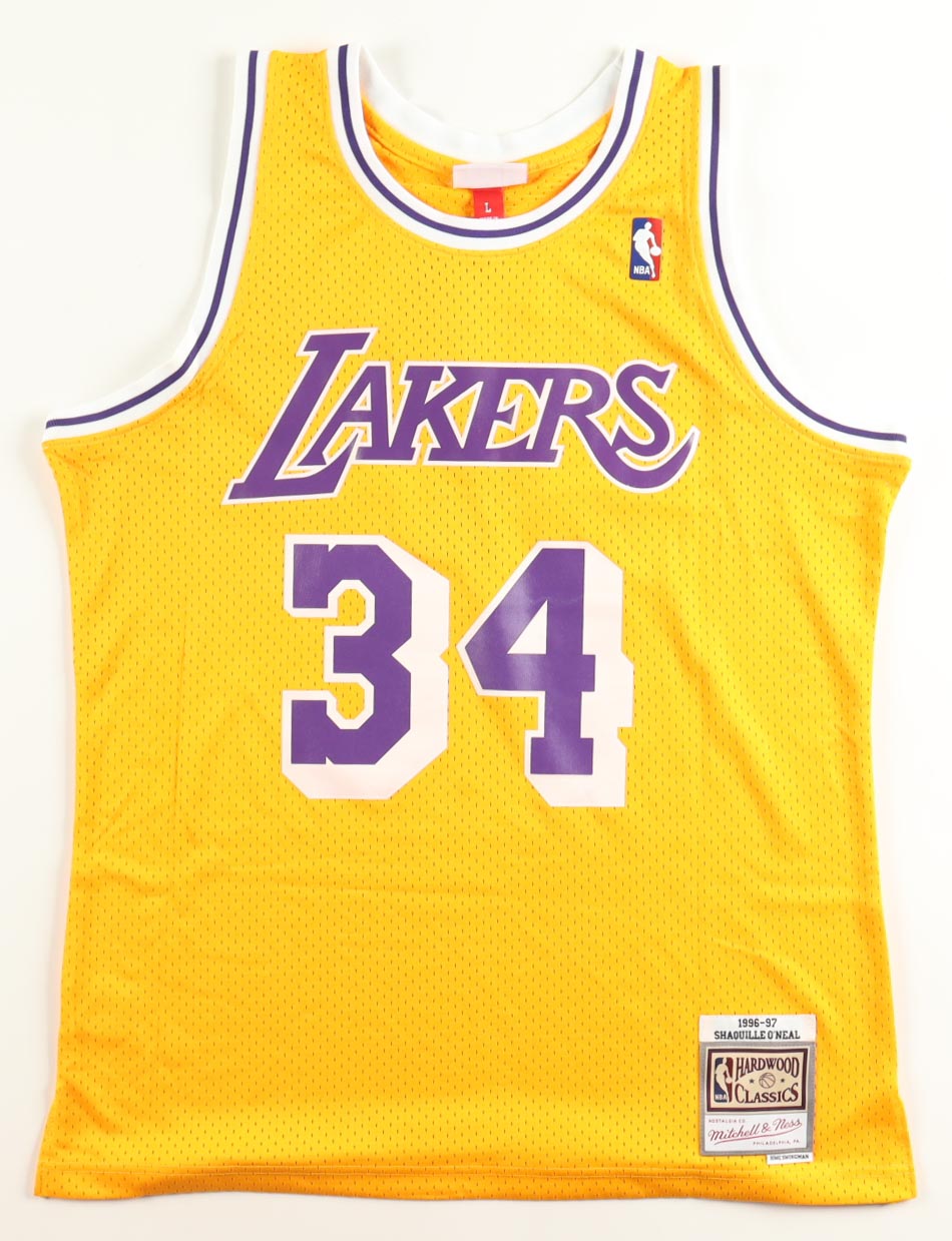 Mitchell & Ness Authentic jersey, everything is sewn on, size XL. Hand-signed by Shaquille O'Neal (Los Angeles Lakers, HOF).
