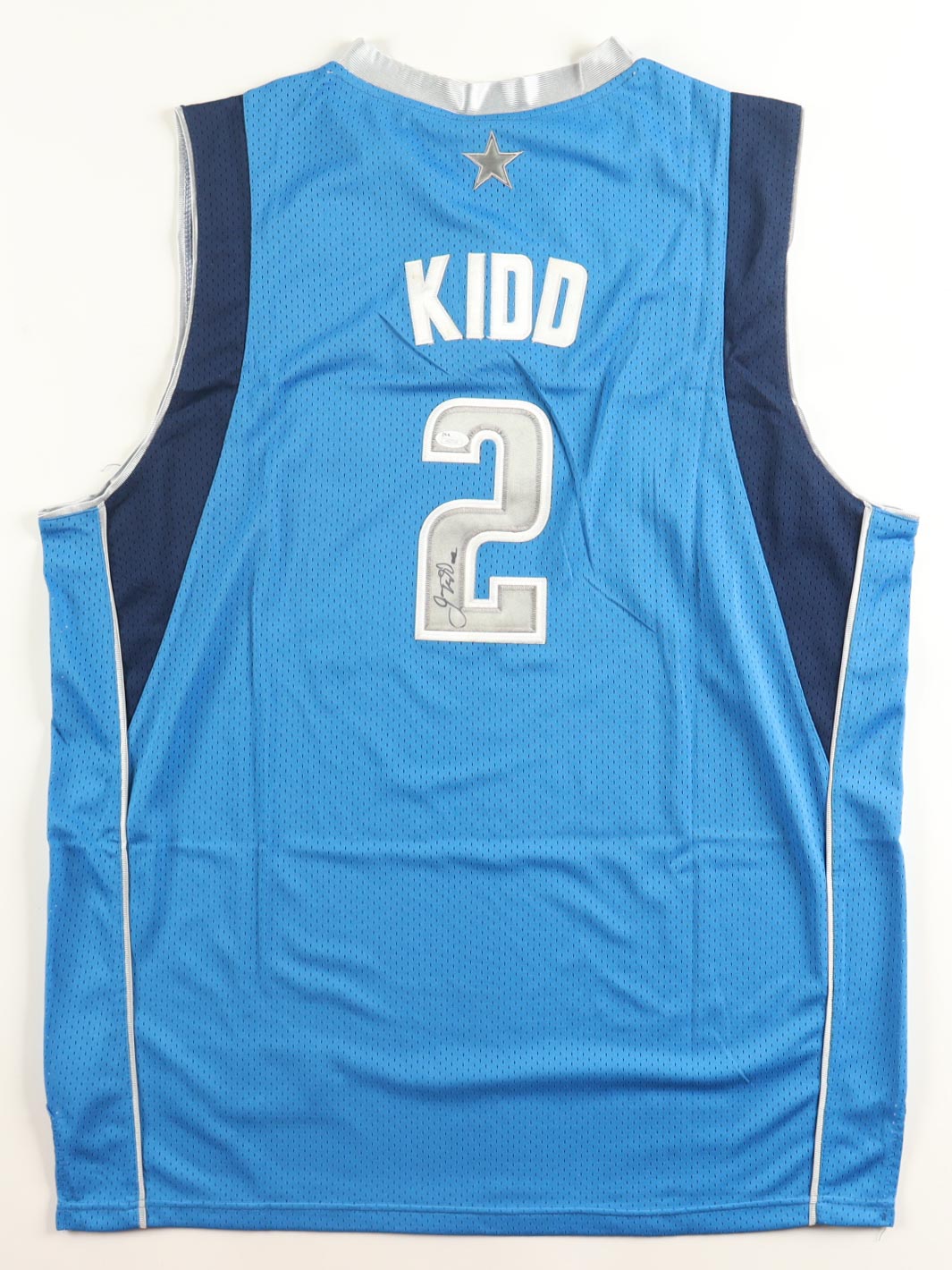 Adidas jersey with everything sewn on, size (XL). Hand-signed by Jason Kidd (Dallas Mavericks, HOF).