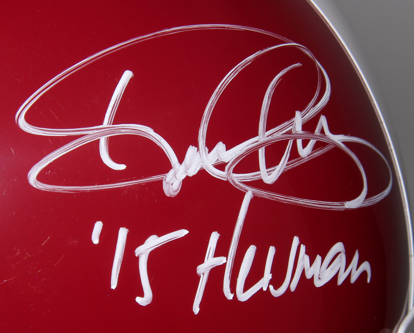 Schutt full-size replica speed helmet hand-signed in white paint pen by Mark Ingram (Saints) and Derrick Henry (Titans).