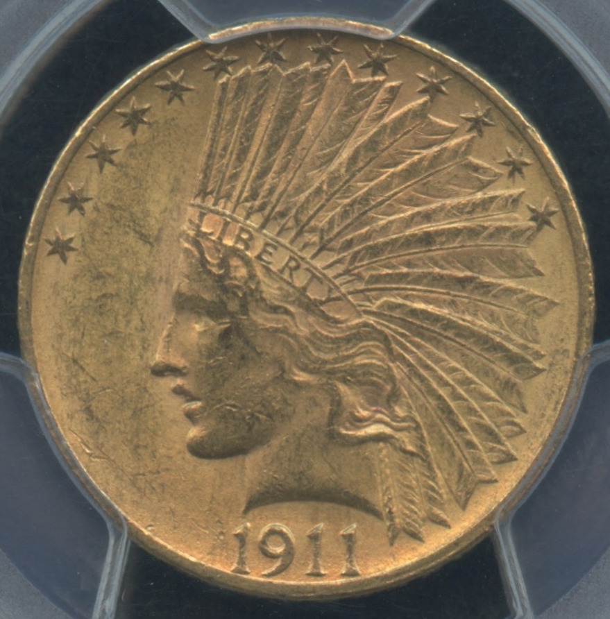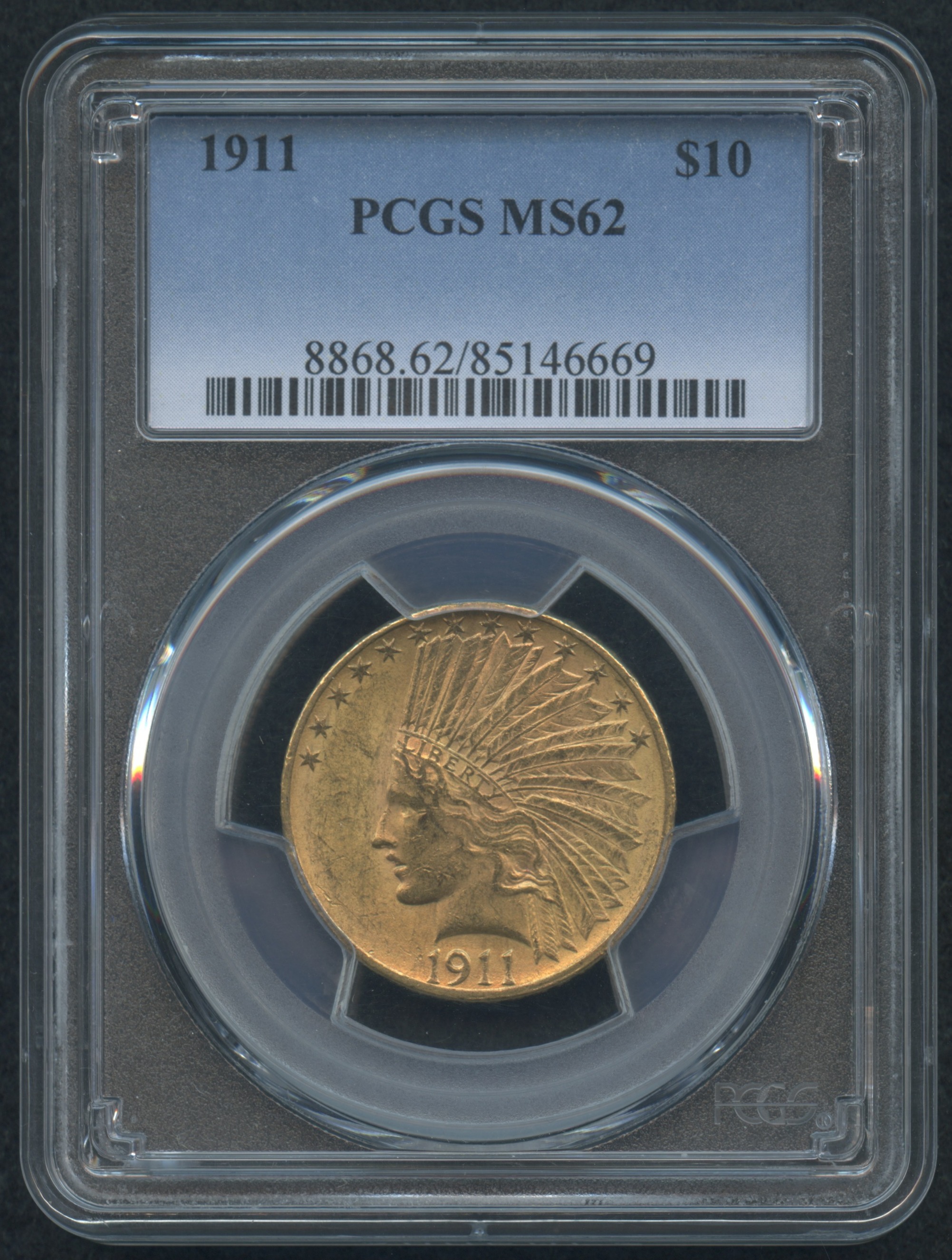 1911 $10 Ten Dollars Indian Head Eagle Gold Coin (PCGS MS 62)