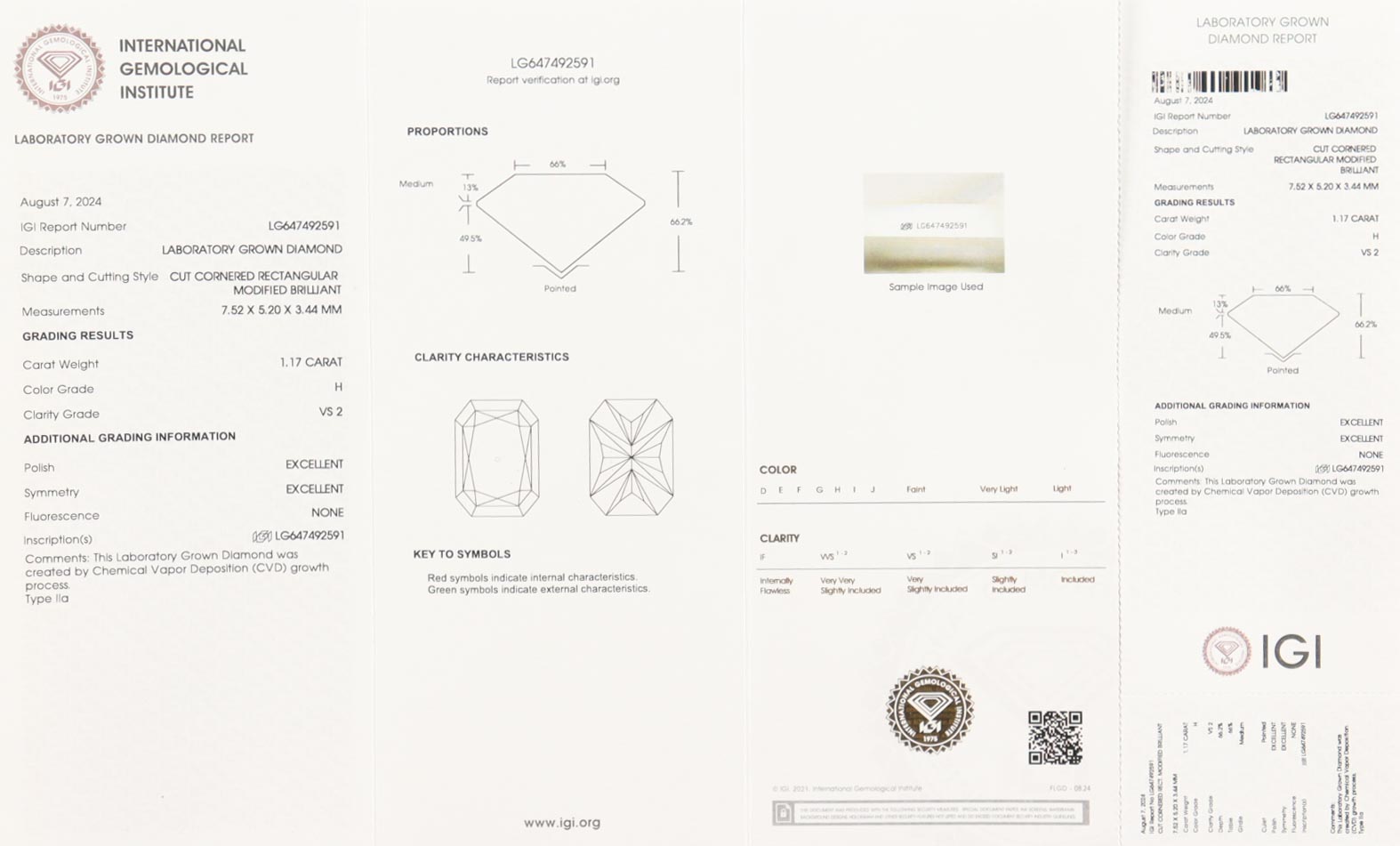 This piece includes paperwork from the International Gemological Institute (IGI).