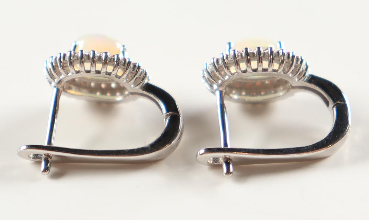 Ladies Opal & Rhodolite Earrings. Earrings Are Made Of Rhodium