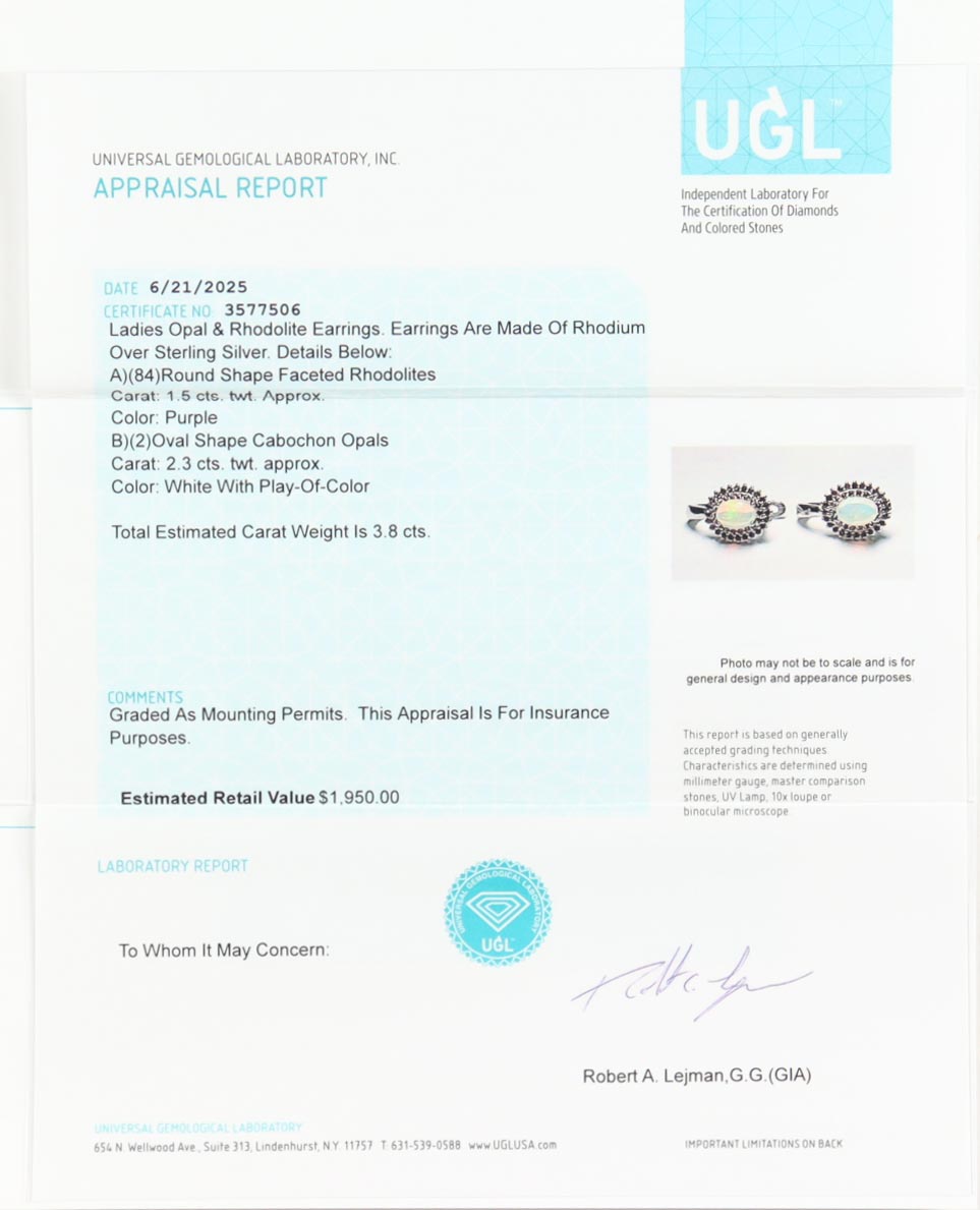 New 3.8 CTW Pair of Rhodolite & Opal Earrings | Estimated Retail Value: $1,950 (UGL)