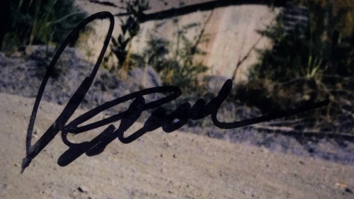 Custom framed display measures 11" x 14" in size and features a photo that has been hand-signed in black felt-tip pen by Clint Eastwood.