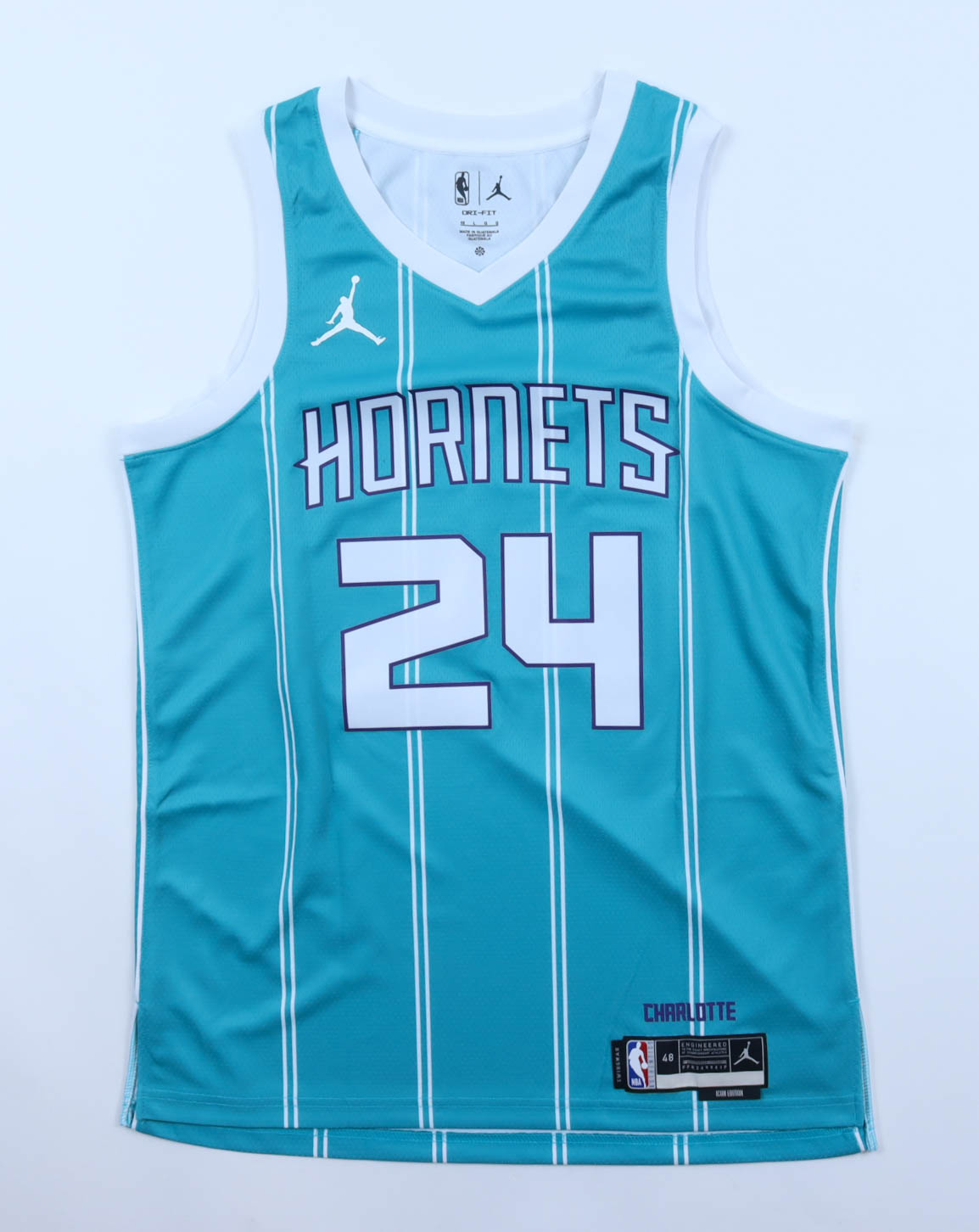 Nike jersey with everything pressed on, size 46. Hand-signed and inscribed by Brandon Miller (Charlotte Hornets). The jersey is limited edition.