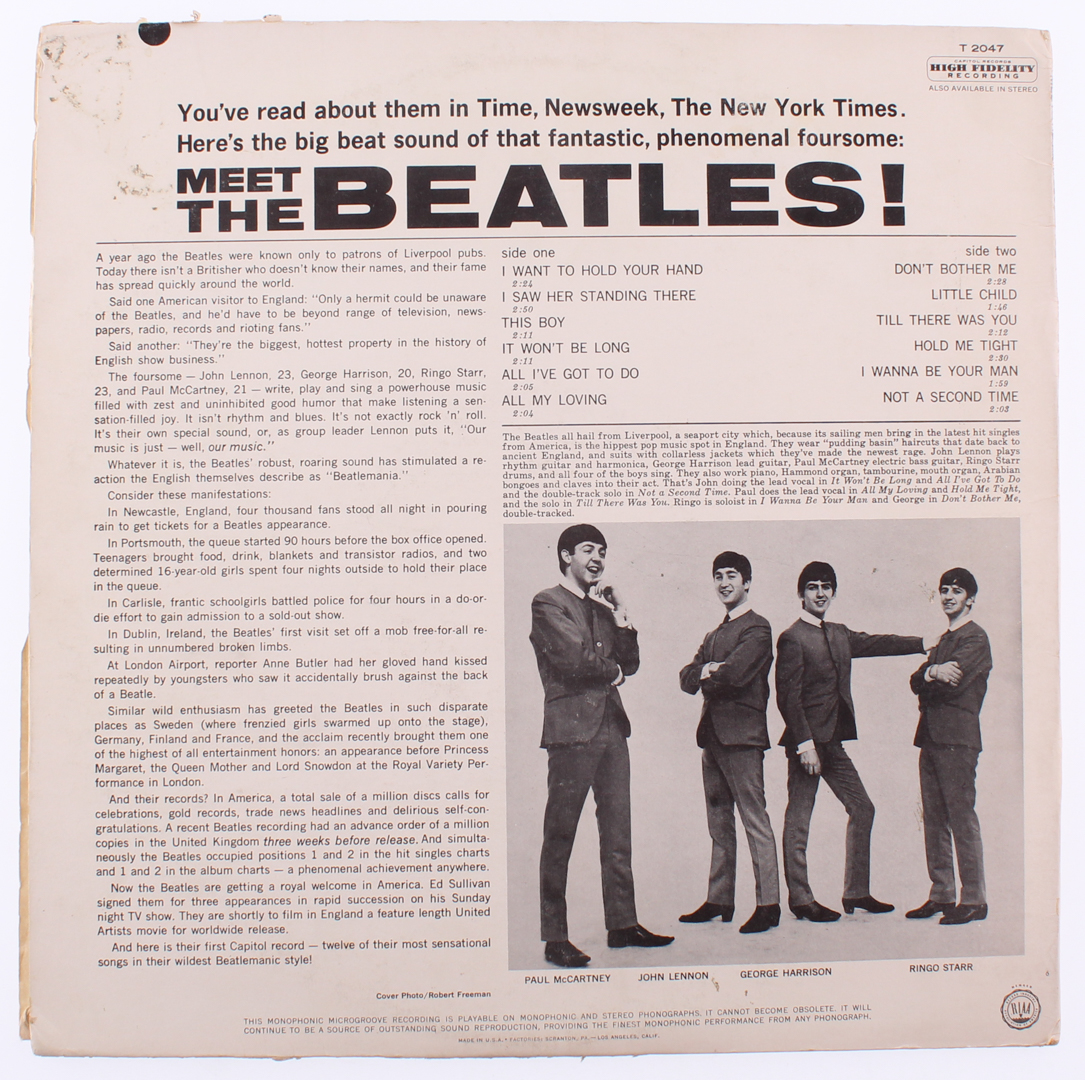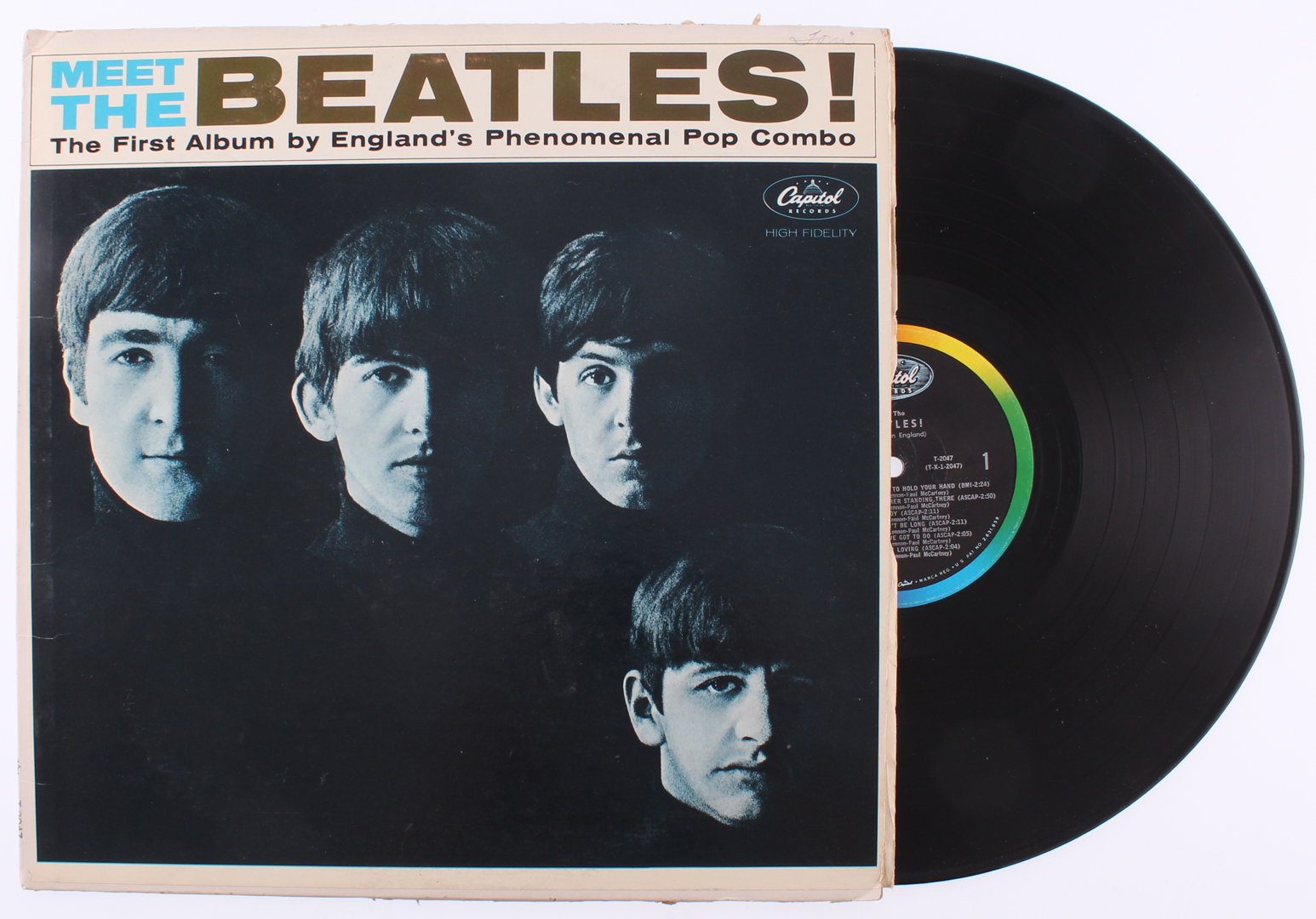 Vintage The Beatles "Meet The Beatles! The First Album by England's Phenomenal Pop Combo" Vinyl Record Album Please note, the sleeve shows signs of wear due to aging.