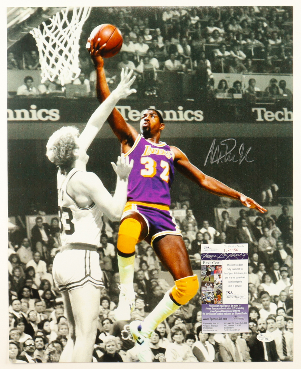 Photo measures 16" x 20" in size and has been hand-signed by Magic Johnson (Los Angeles Lakers, HOF).
