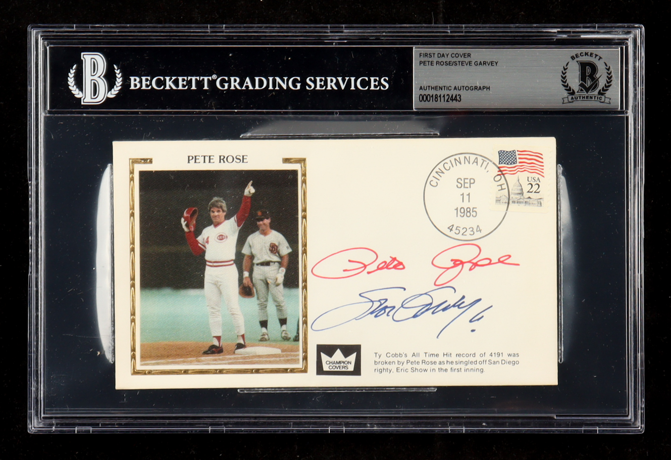 Pete Rose & Steve Garvey Signed 1985 FDC Envelope (Beckett | Auto Grade BGS Authentic)