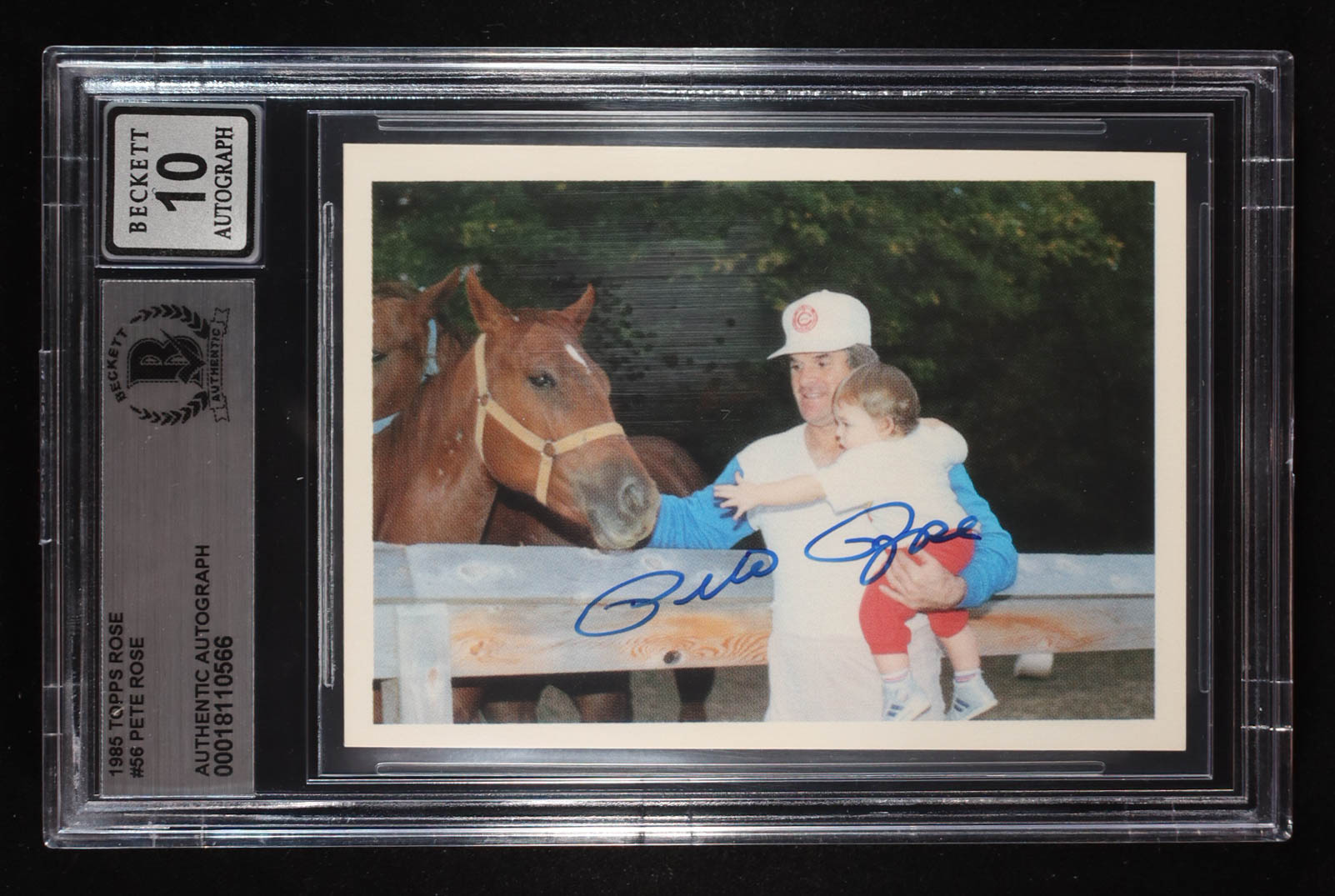 Pete Rose Signed 1985 Topps Rose #56 / Tyler Rose With Horse (BGS | Autograph Grade 10)