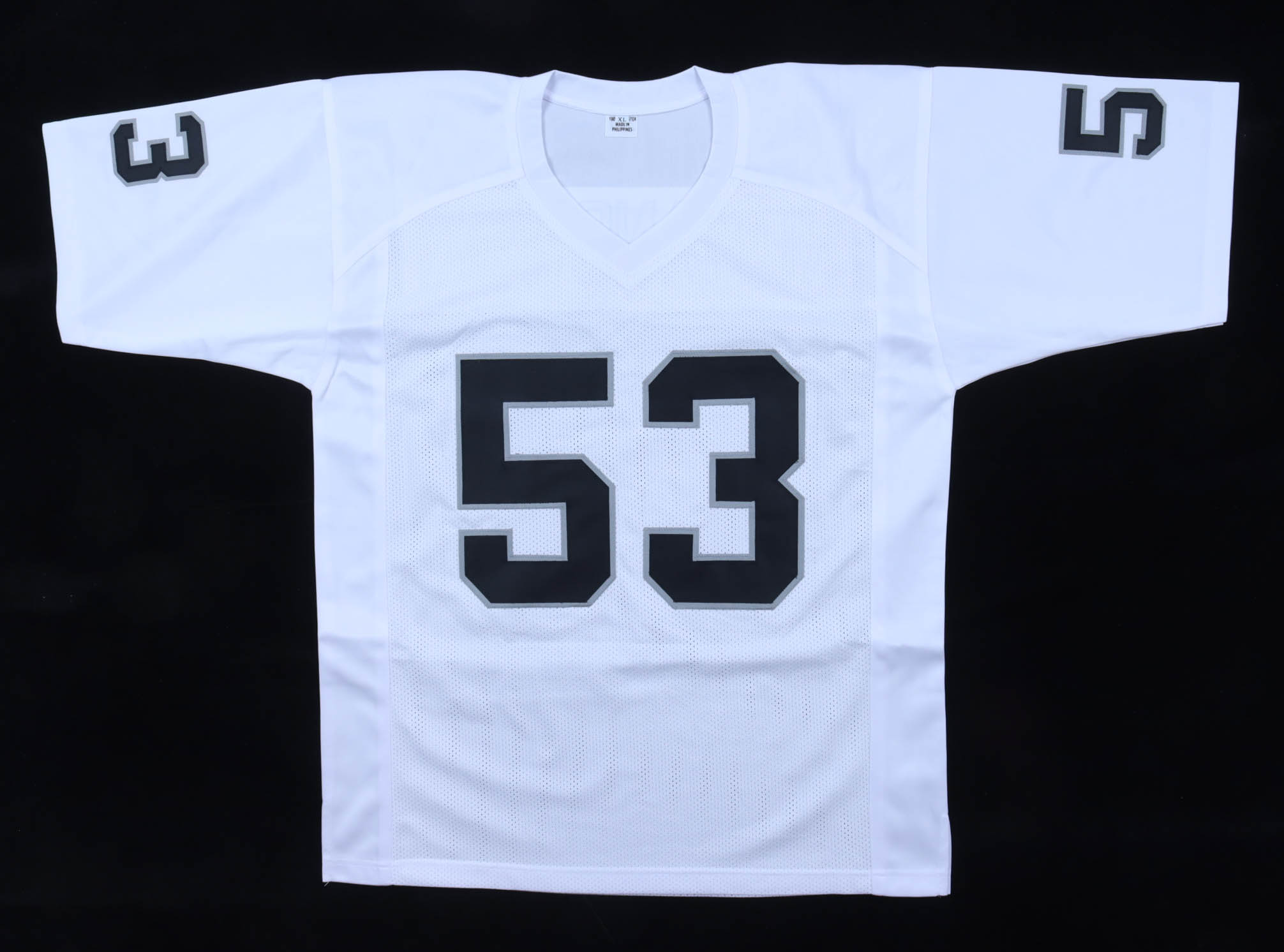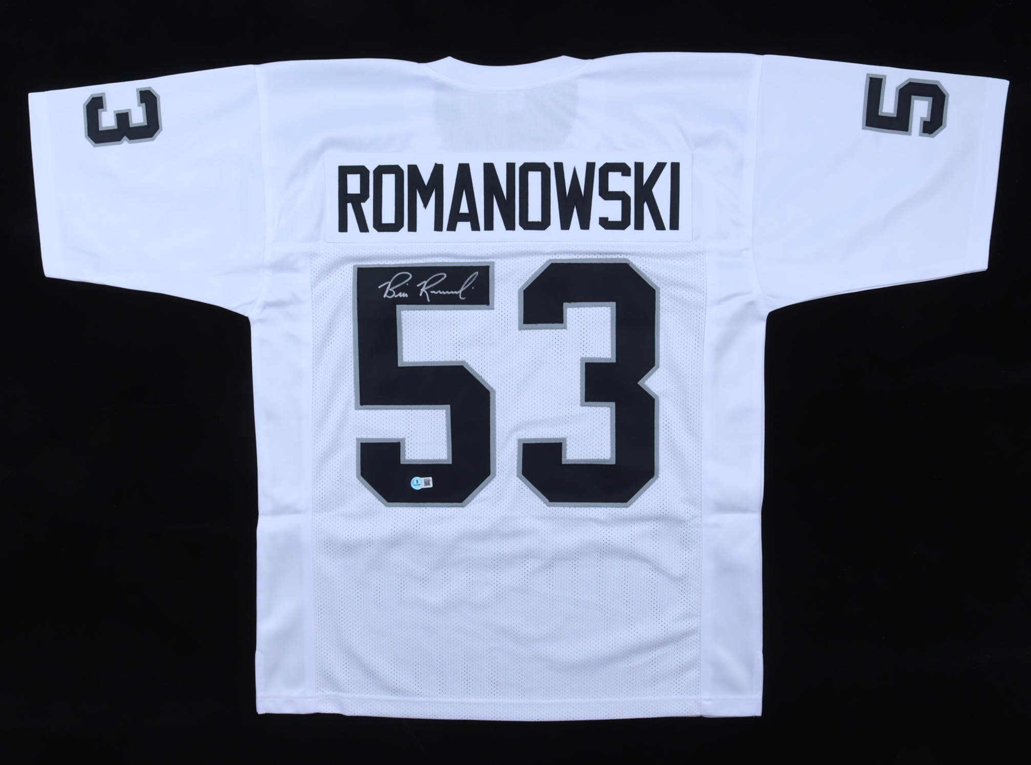 Custom jersey with everything sewn on, size XL. Hand-signed by Bill Romanowski.