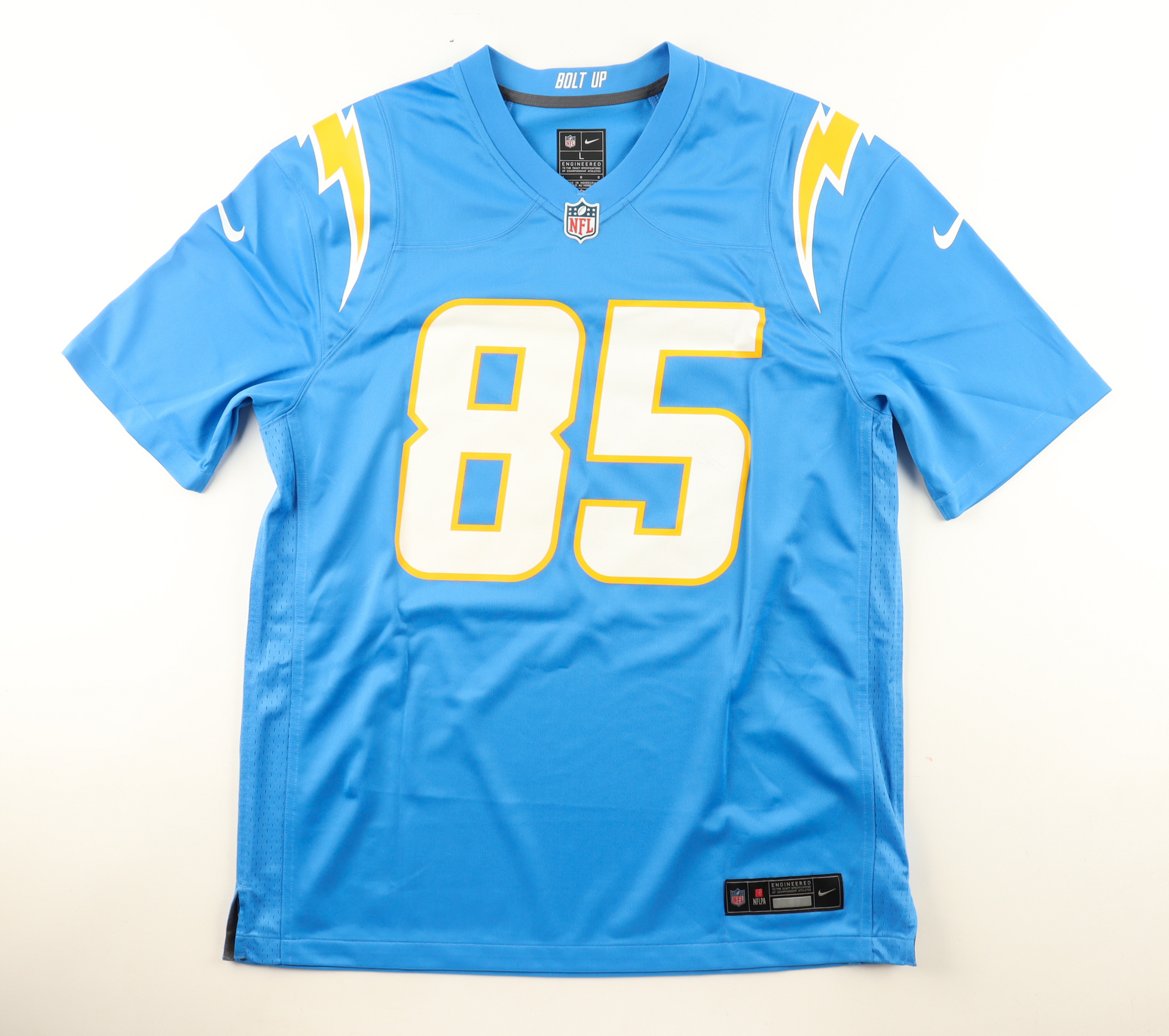 Nike jersey with everything pressed on, size L. Hand-signed by Antonio Gates (Los Angeles Chargers, HOF). Please note, there is staining on the front number. See photos regarding the condition of the item.