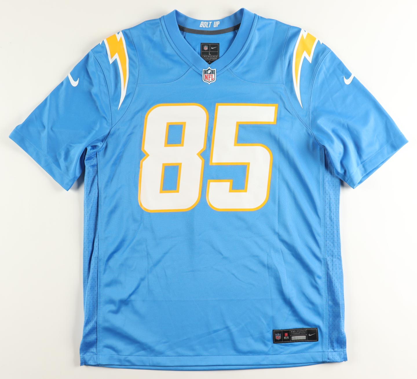 Nike jersey with everything pressed on, size L. Hand-signed by Antonio Gates (Los Angeles Chargers, HOF). Please note, there is staining on the jersey numbers. See photos regarding the condition of the item.