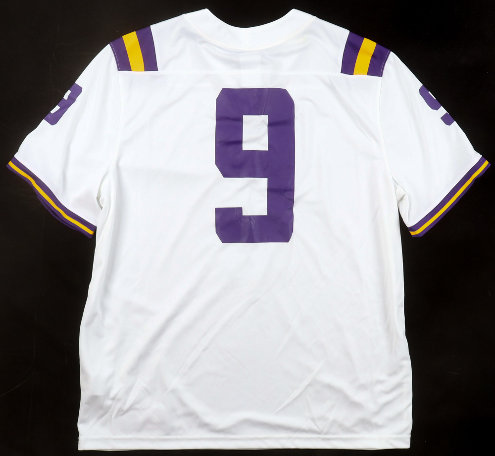 Nike jersey with everything printed on, size XL. Hand-signed by Joe Burrow (LSU Tigers). Please note, there are stray ink marks on the jersey numbers. See photos regarding the condition of the item.