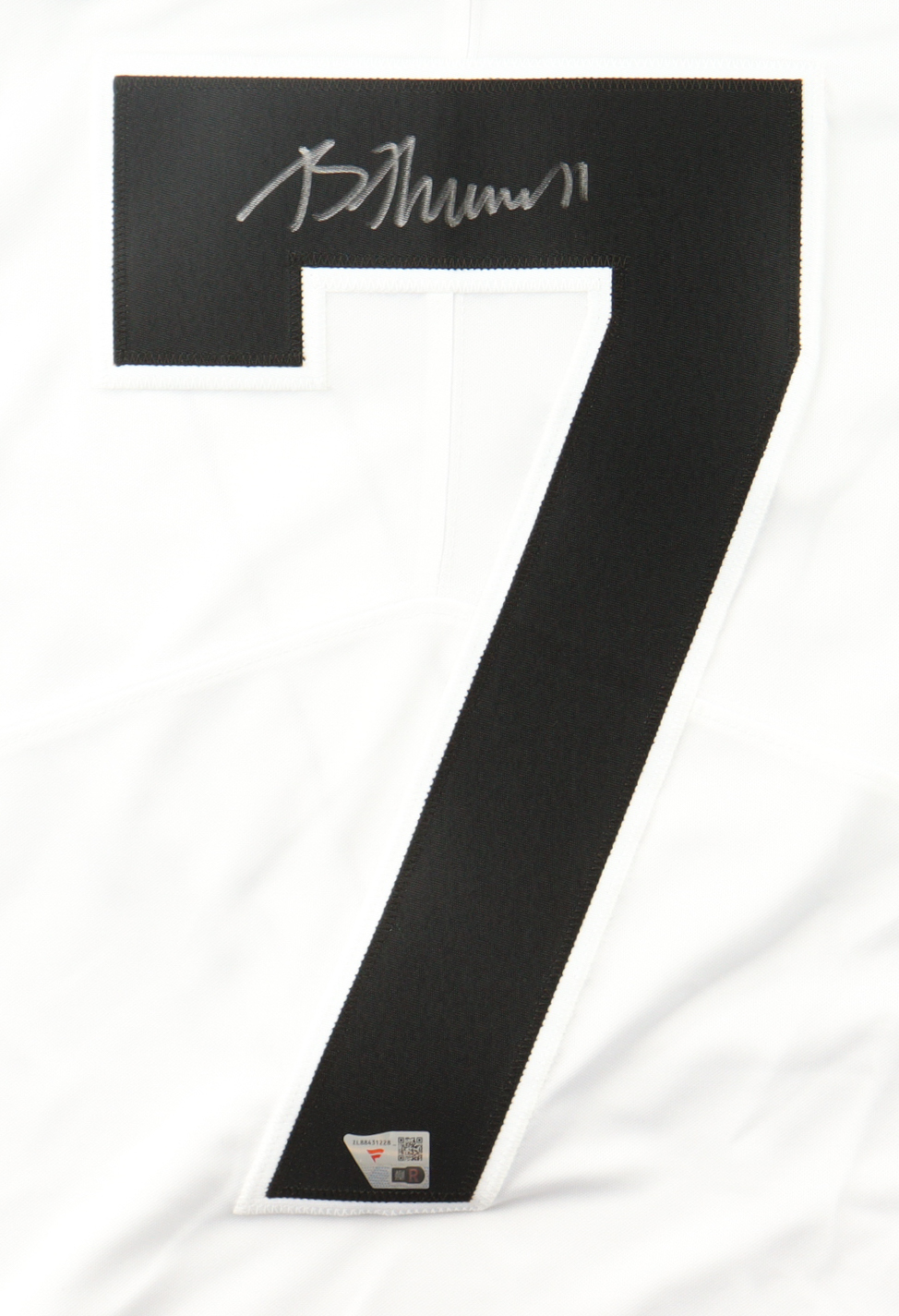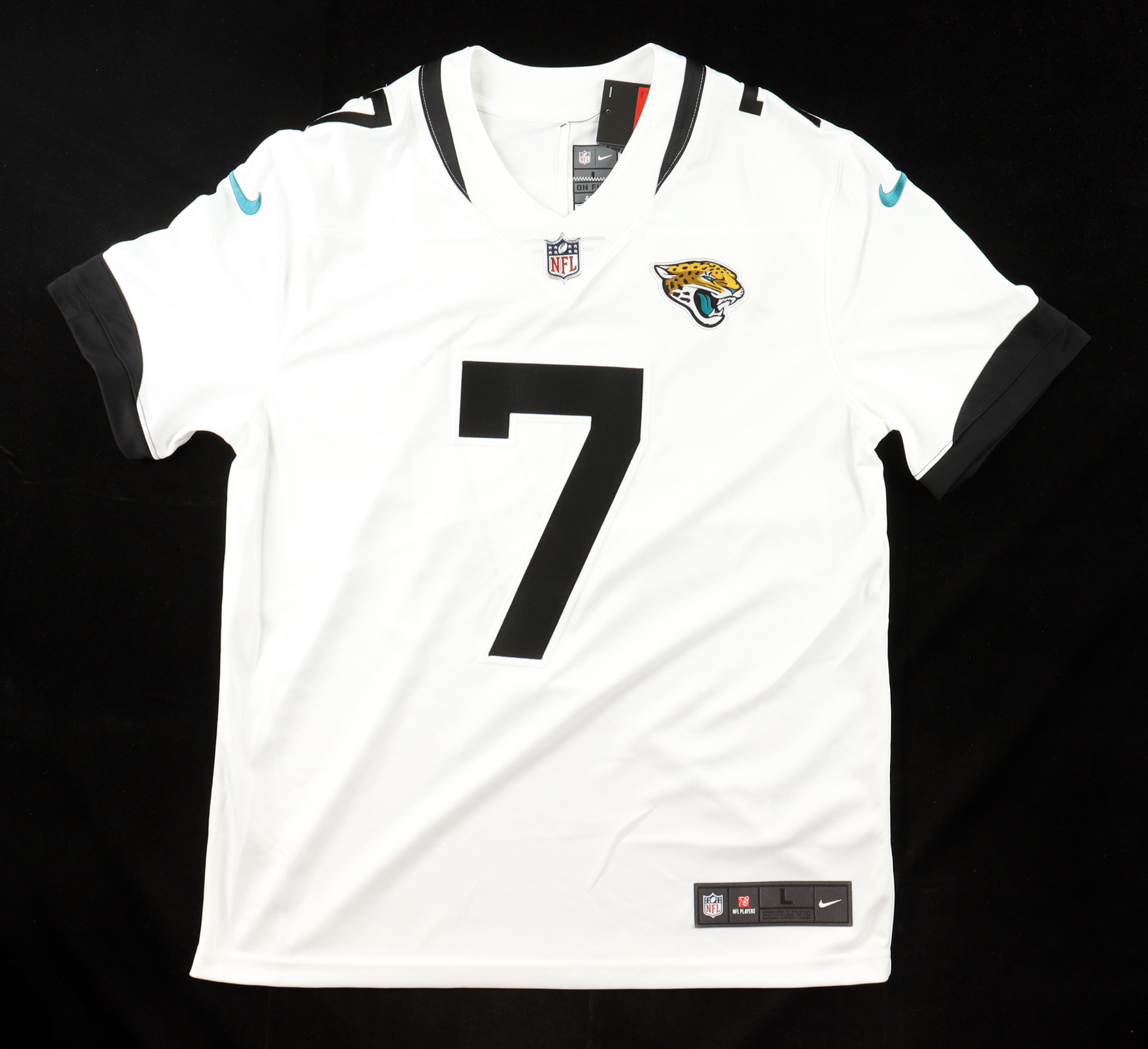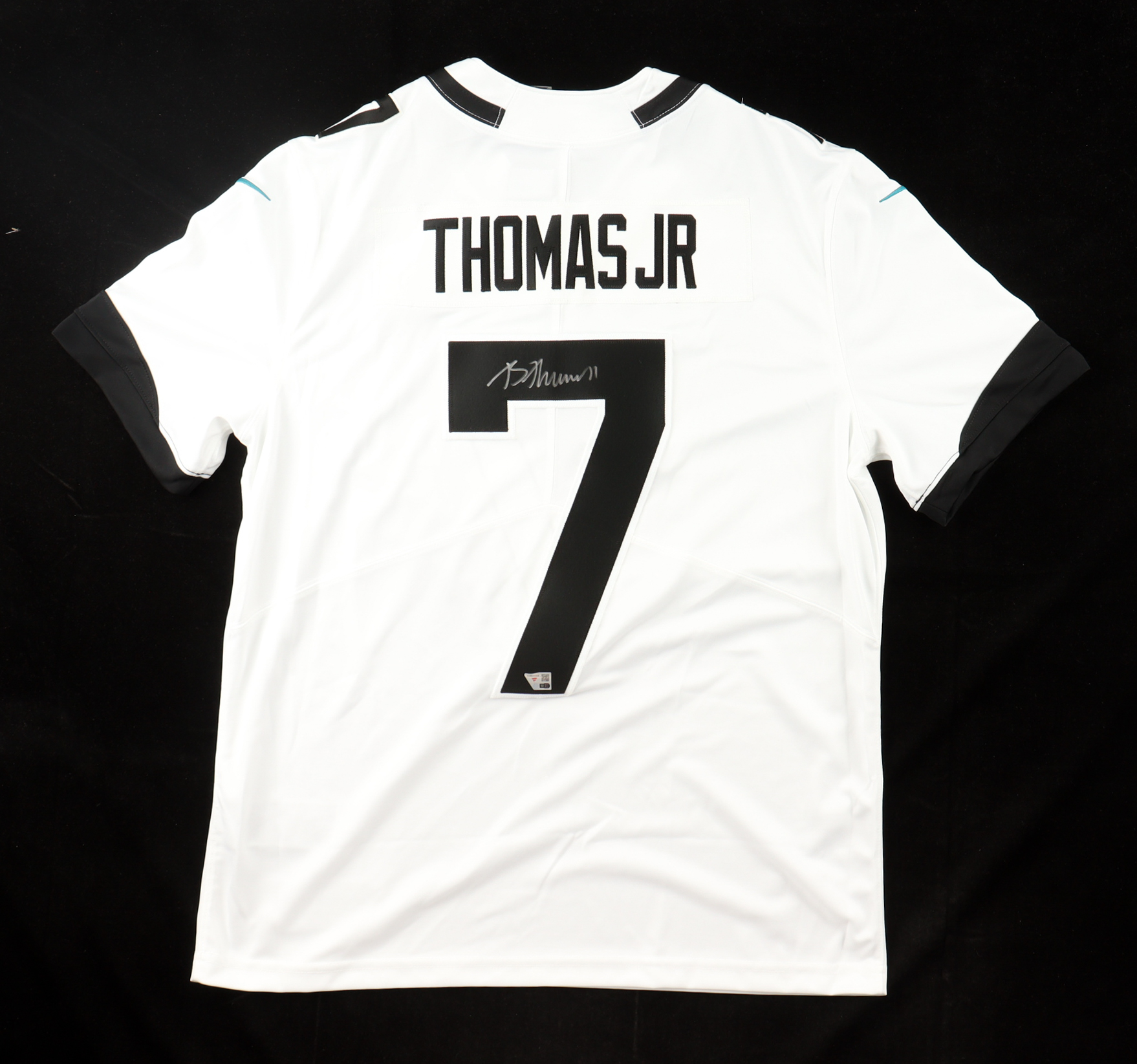 Nike jersey. Everything is sewn on, size L. Has been hand-signed by Brian Thomas Jr. (Jacksonville Jaguars).