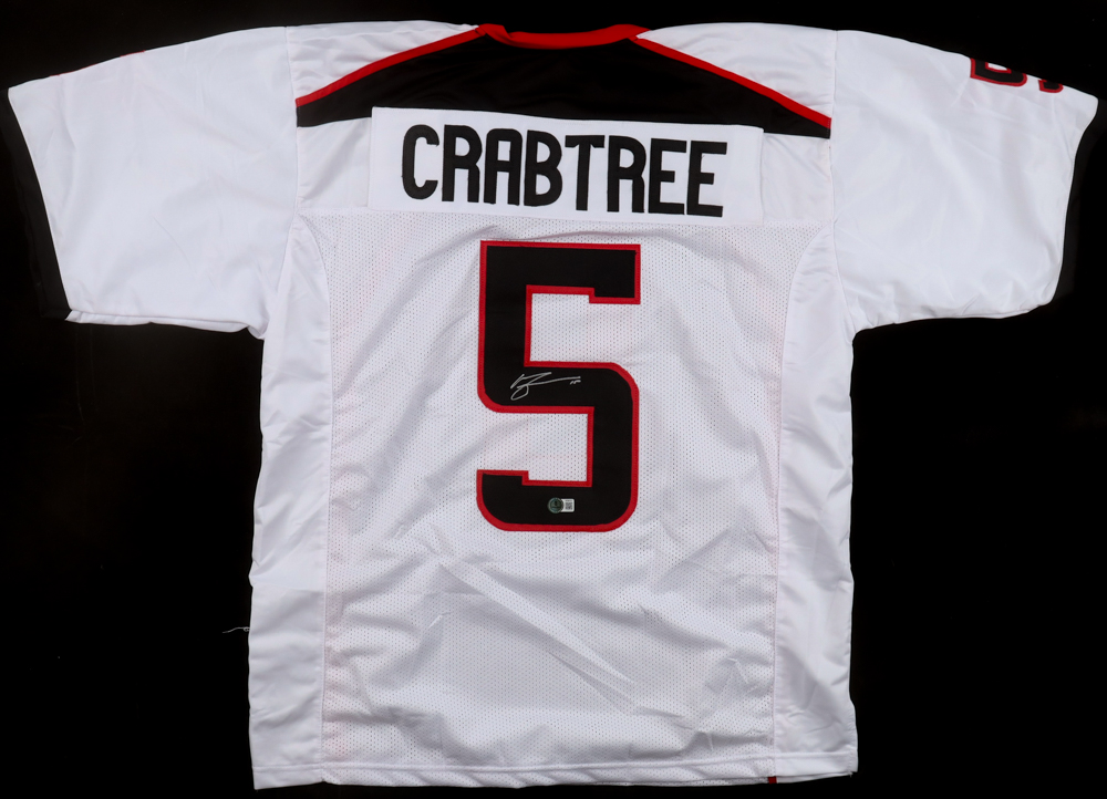 Custom jersey with everything sewn on, size XL. Hand-signed by Michael Crabtree.