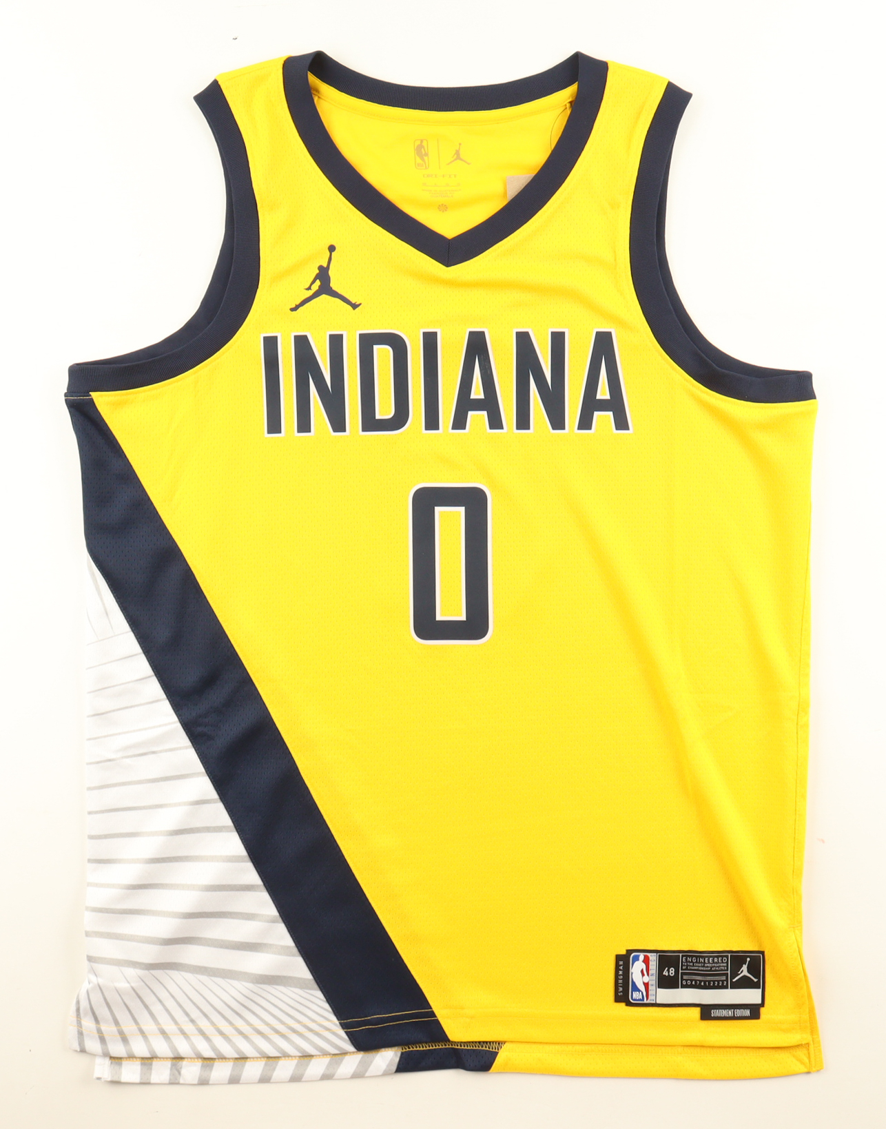 Jordan jersey. Everything pressed on, size 48. Hand-signed by Tyrese Haliburton (Indiana Pacers).