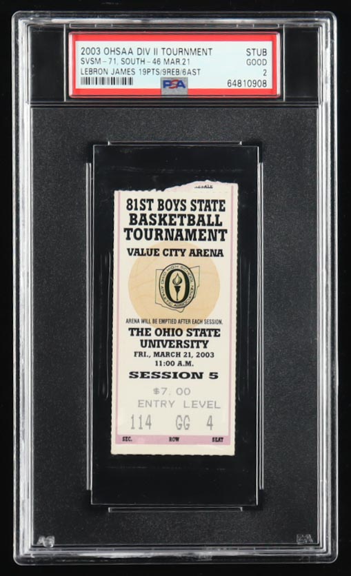 2003 OHSAA Division II Basketball Tournament Game Ticket dated March 21, 2003 has been graded PSA 2. Please note, the ticket is unsigned. Please see photos for details regarding the condition of the ticket.