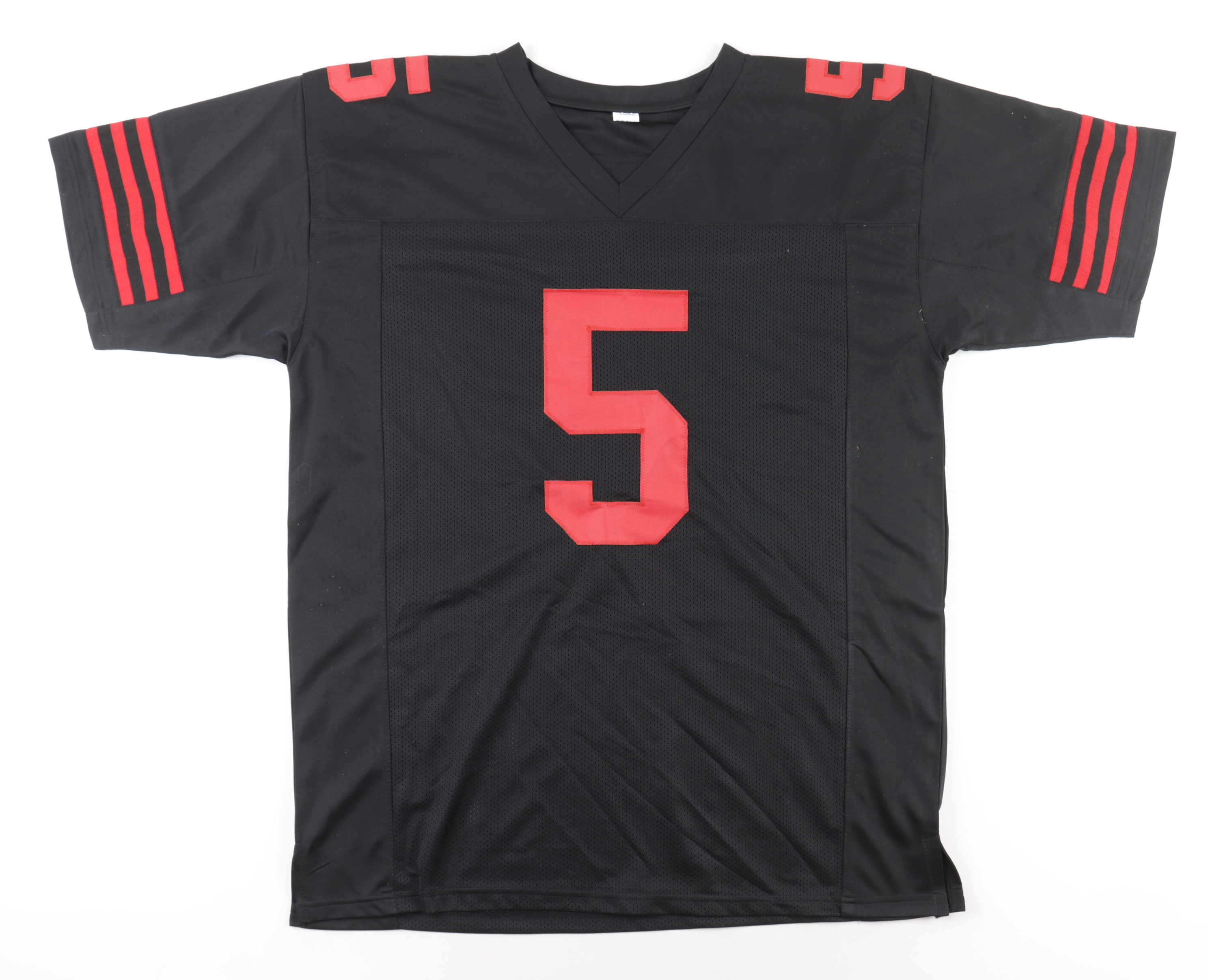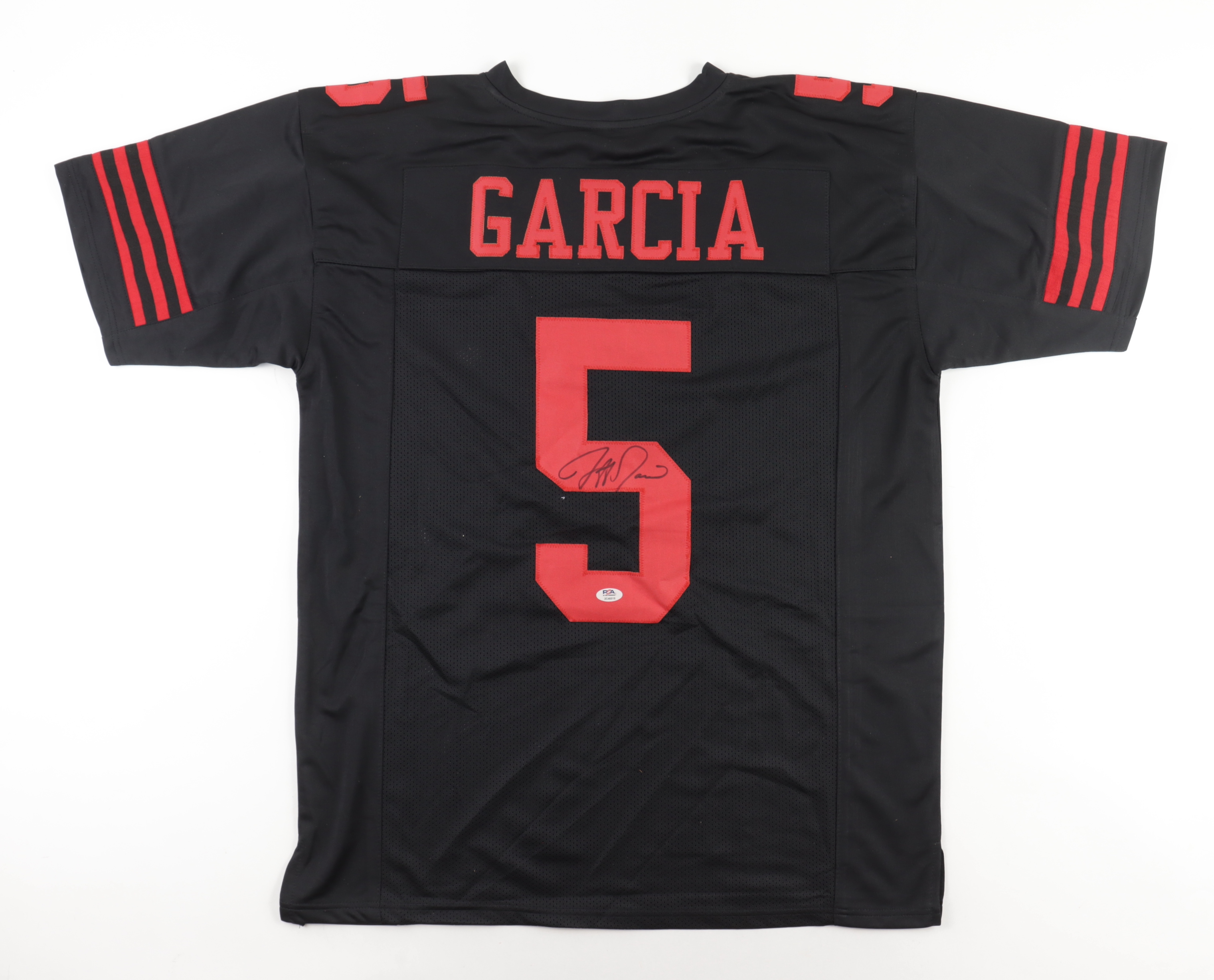 Custom on-field style jersey. Everything is sewn on, size XL. Hand-signed by Jeff Garcia.