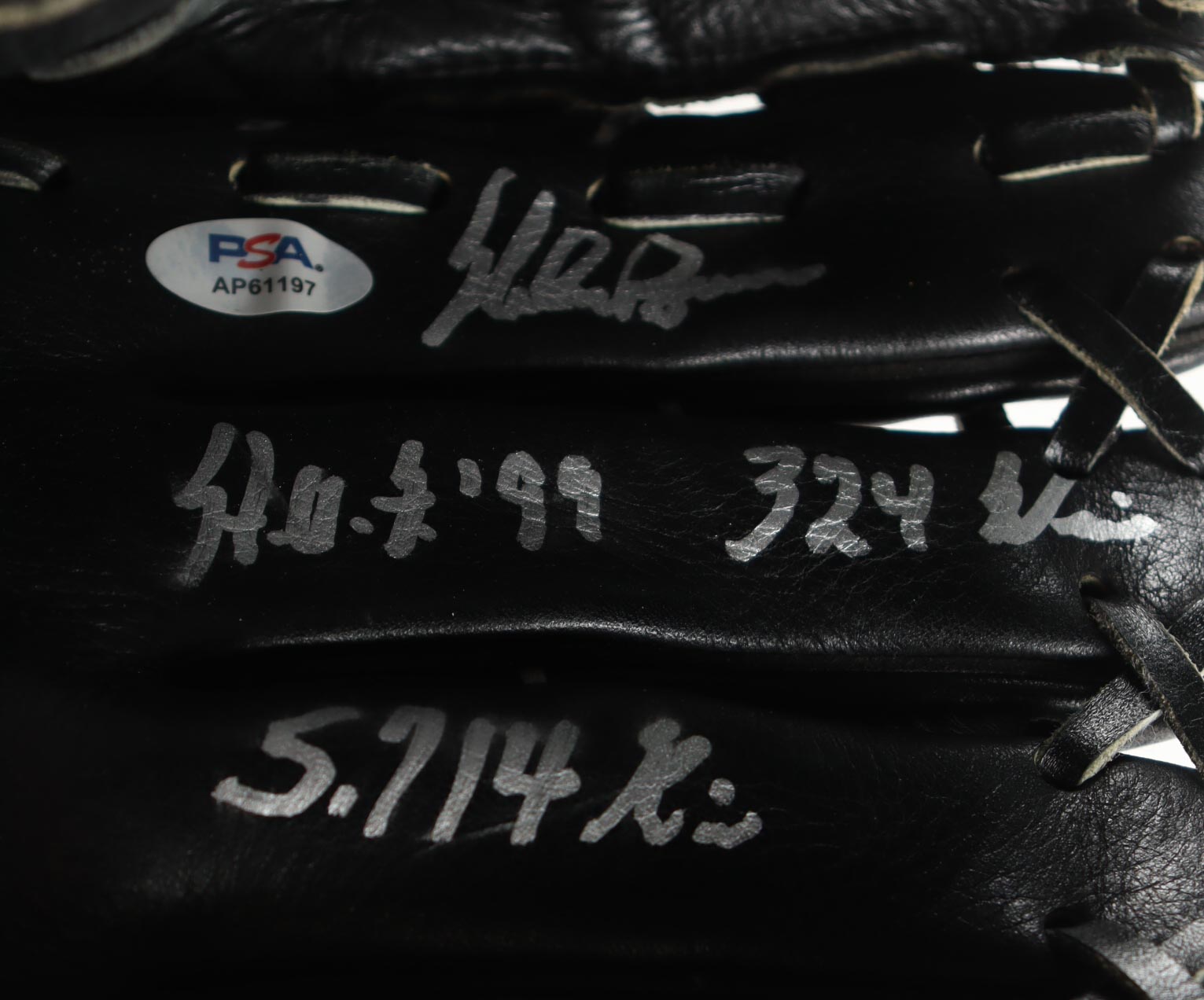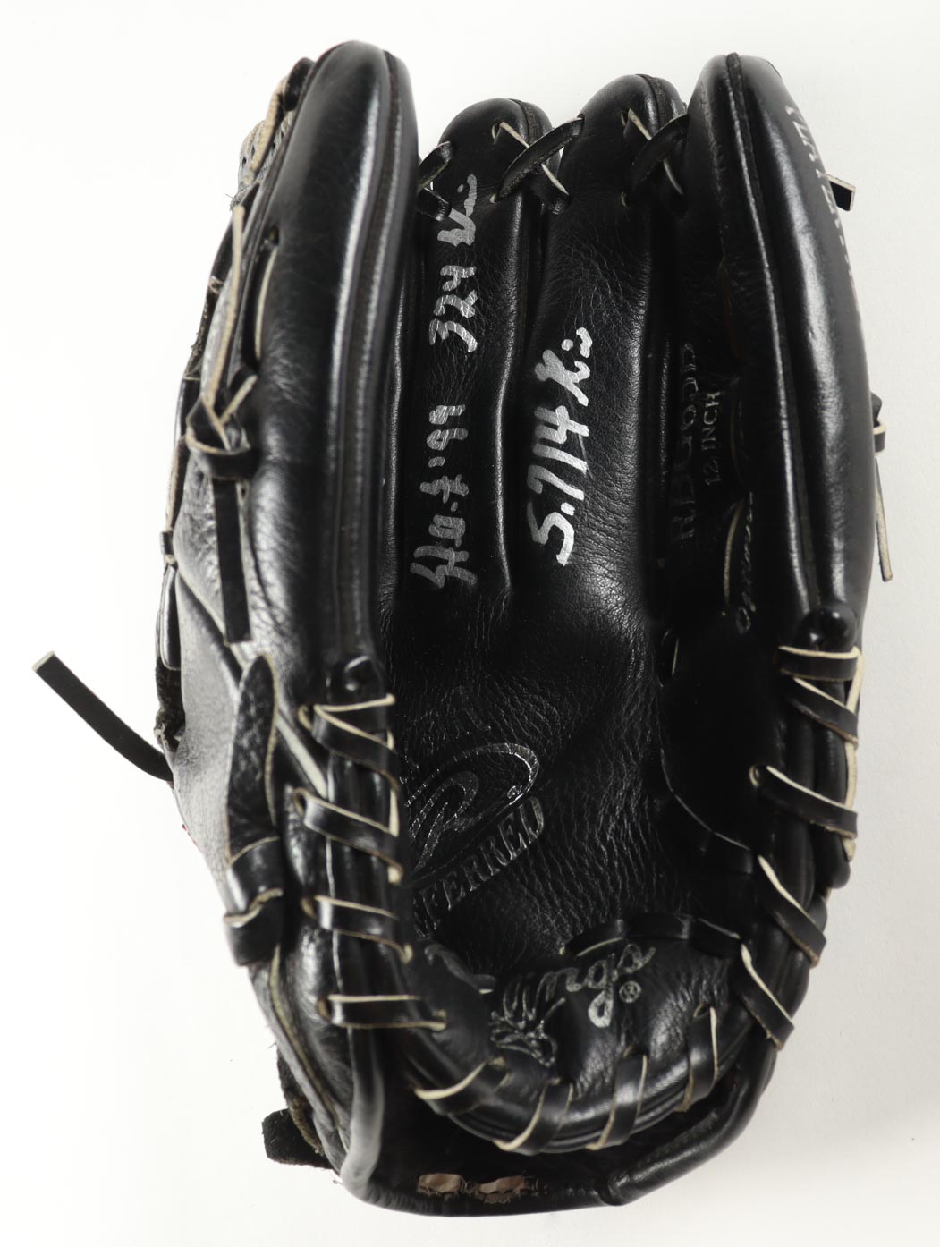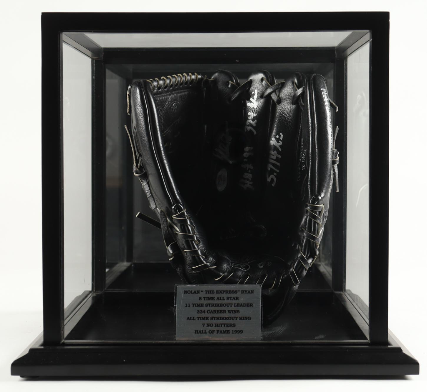 Nolan Ryan Signed Rawlings Baseball Glove with Display Case & Full Career Statistics Plaque Inscribed "HOF '99", "324 Wins" & "5,714 Ks" (PSA)