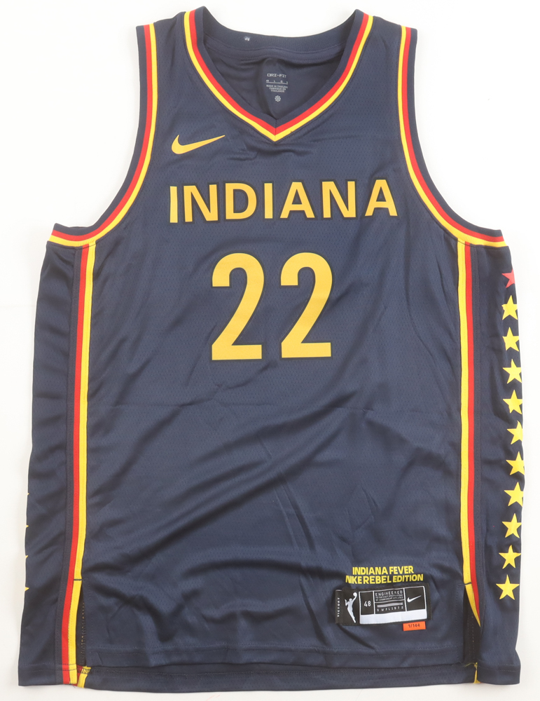Nike authentic jersey with everything pressed on, size 48. Hand-signed by Caitlin Clark (Indiana Fever).