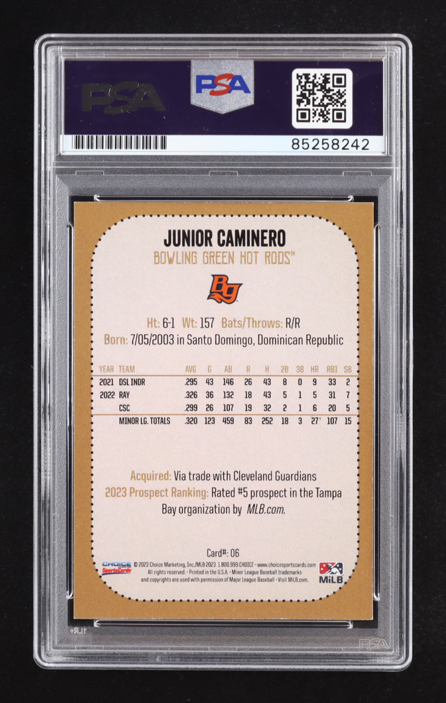Junior Caminero Signed 2023 South Atlantic League Top Prospects Choice #6 RC (PSA | Auto Grade PSA 10)