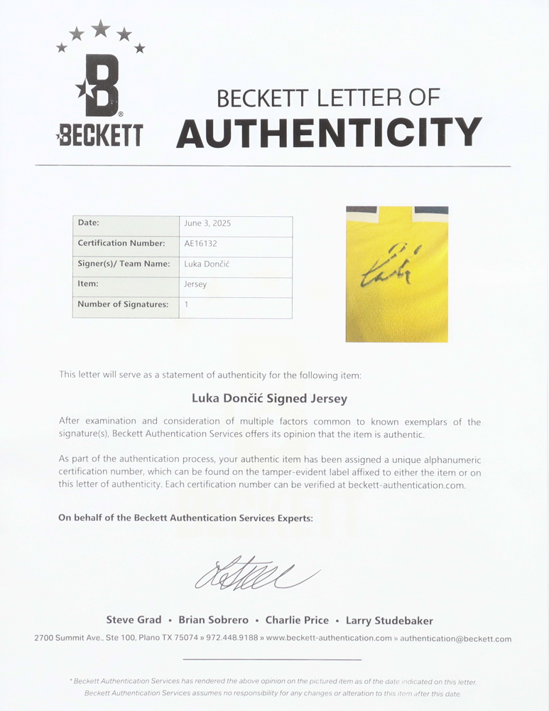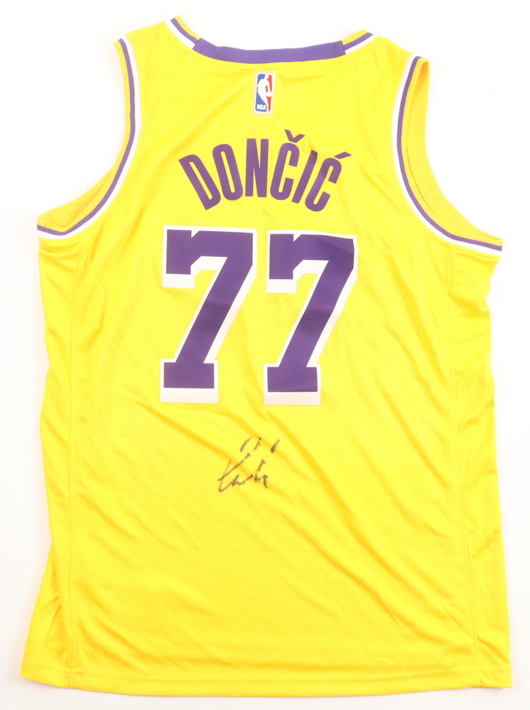 Authentic Nike jersey with everything pressed on, size 48. Hand-signed by Luka Doncic (Los Angeles Lakers).