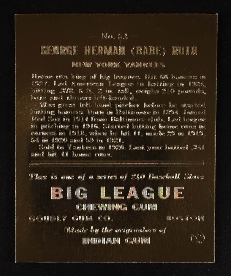 Babe Ruth 1996 Goudey Big League 23Kt Gold #53