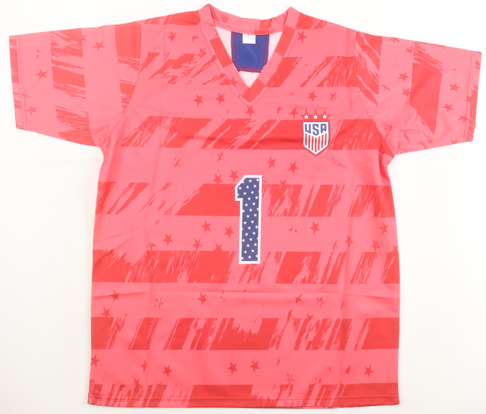 Custom jersey, everything sewn on, size XL. Hand-signed by Hope Solo.