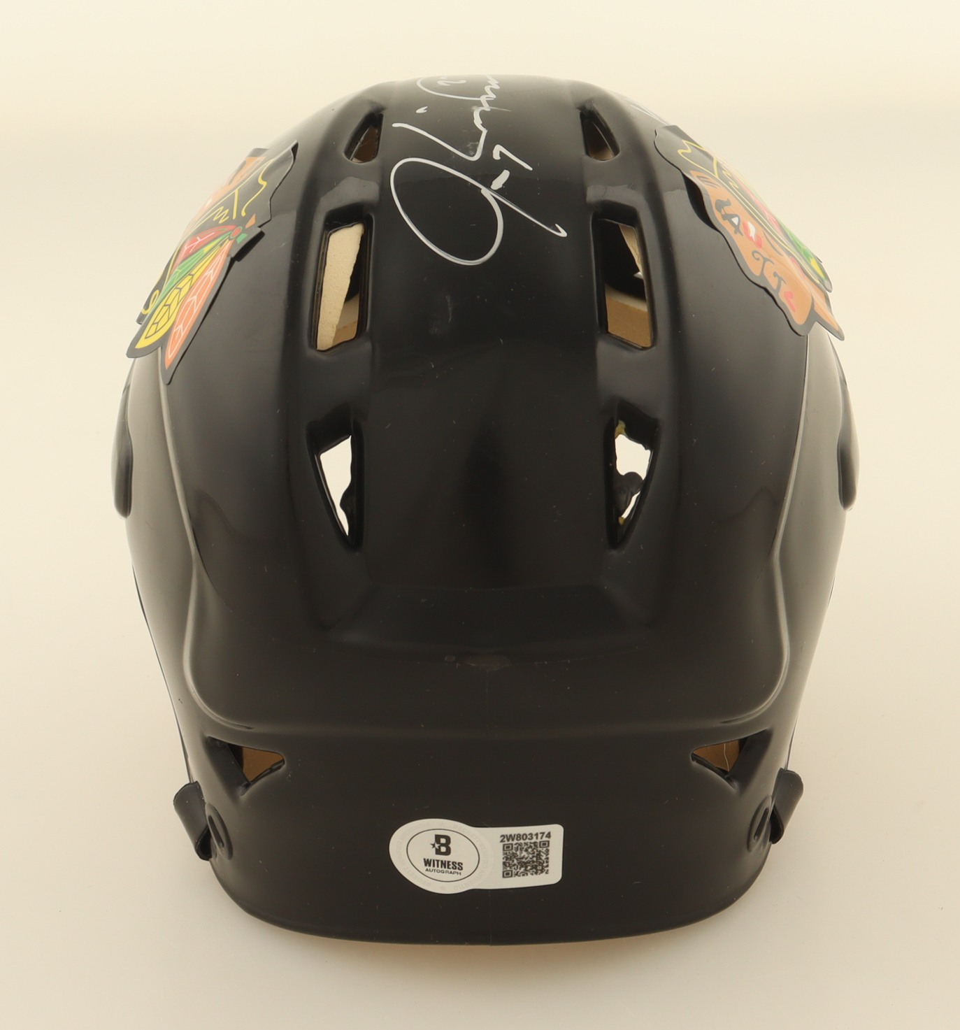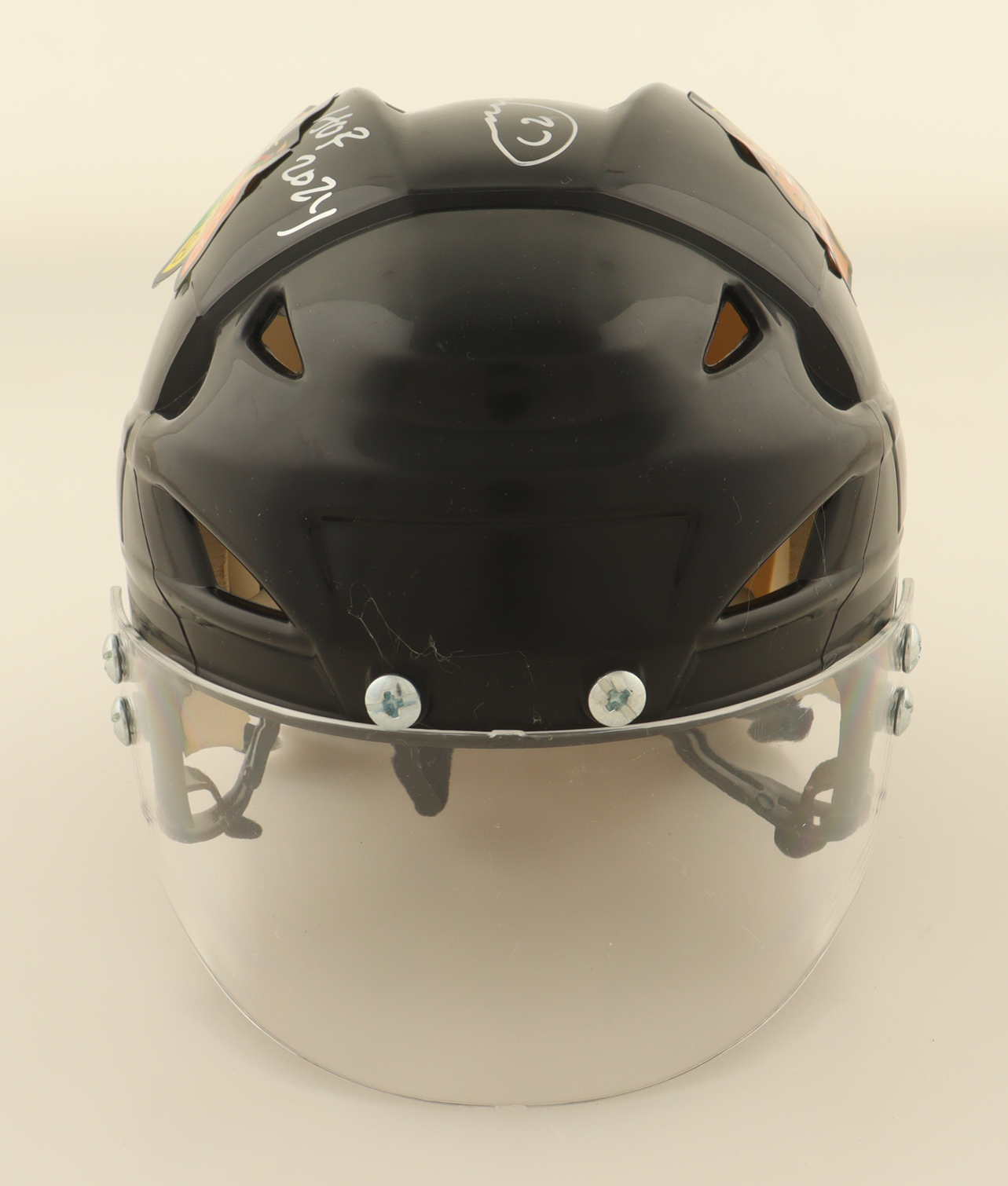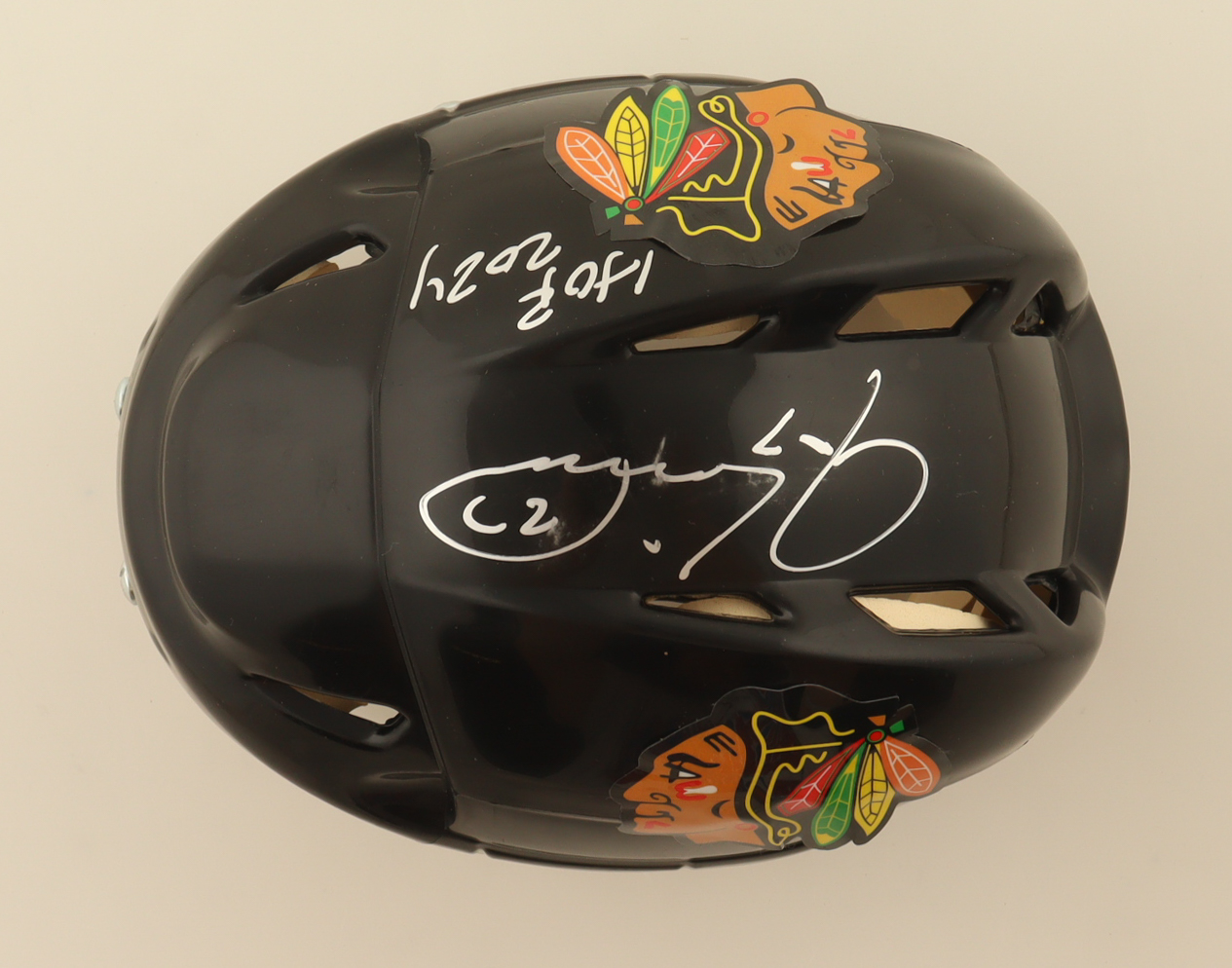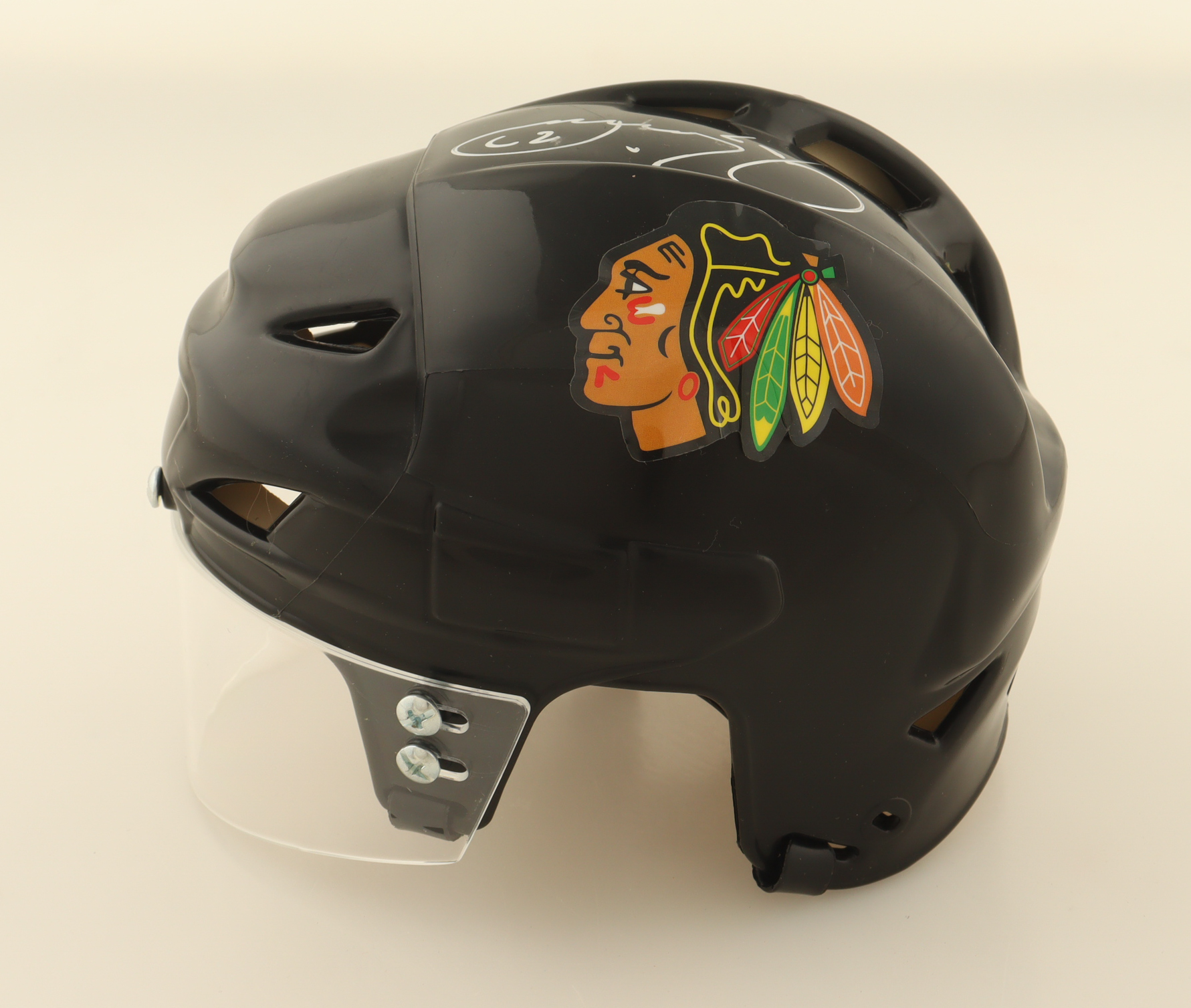 Chicago Blackhawks Mini Hockey Helmet. Hand-signed by Jeremy Roenick (HOF).