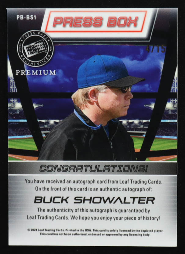 Buck Showalter 2024 Leaf Press Pass Press Box Autographs Hyper #PBBS1 #04/15
