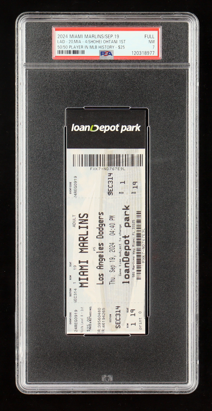 Shohei Ohtani 2024 Dodgers 1st 50/50 Player In MLB History Authentic Full Game Ticket (PSA 7)