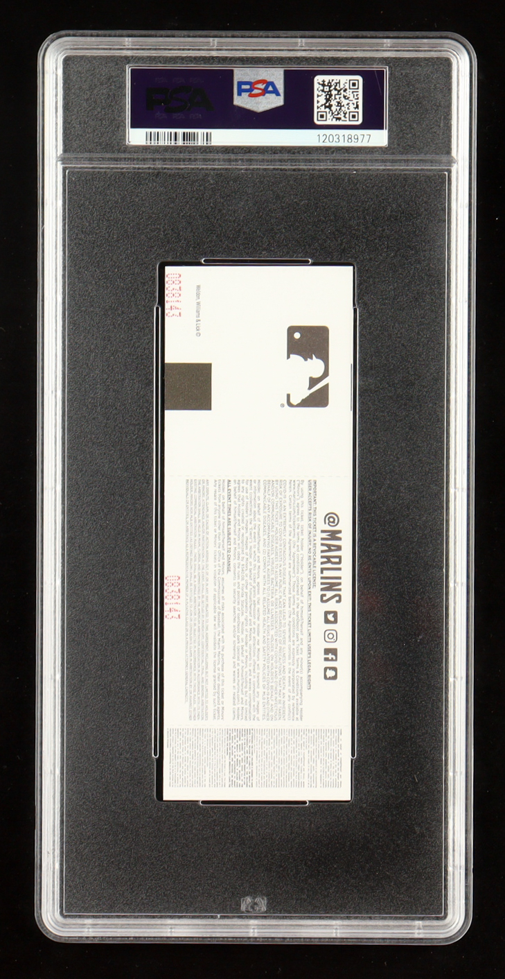 The ticket has been authenticated and encapsulated by PSA for authenticity purposes. The ticket has been graded 10 (GEM MT) by PSA.