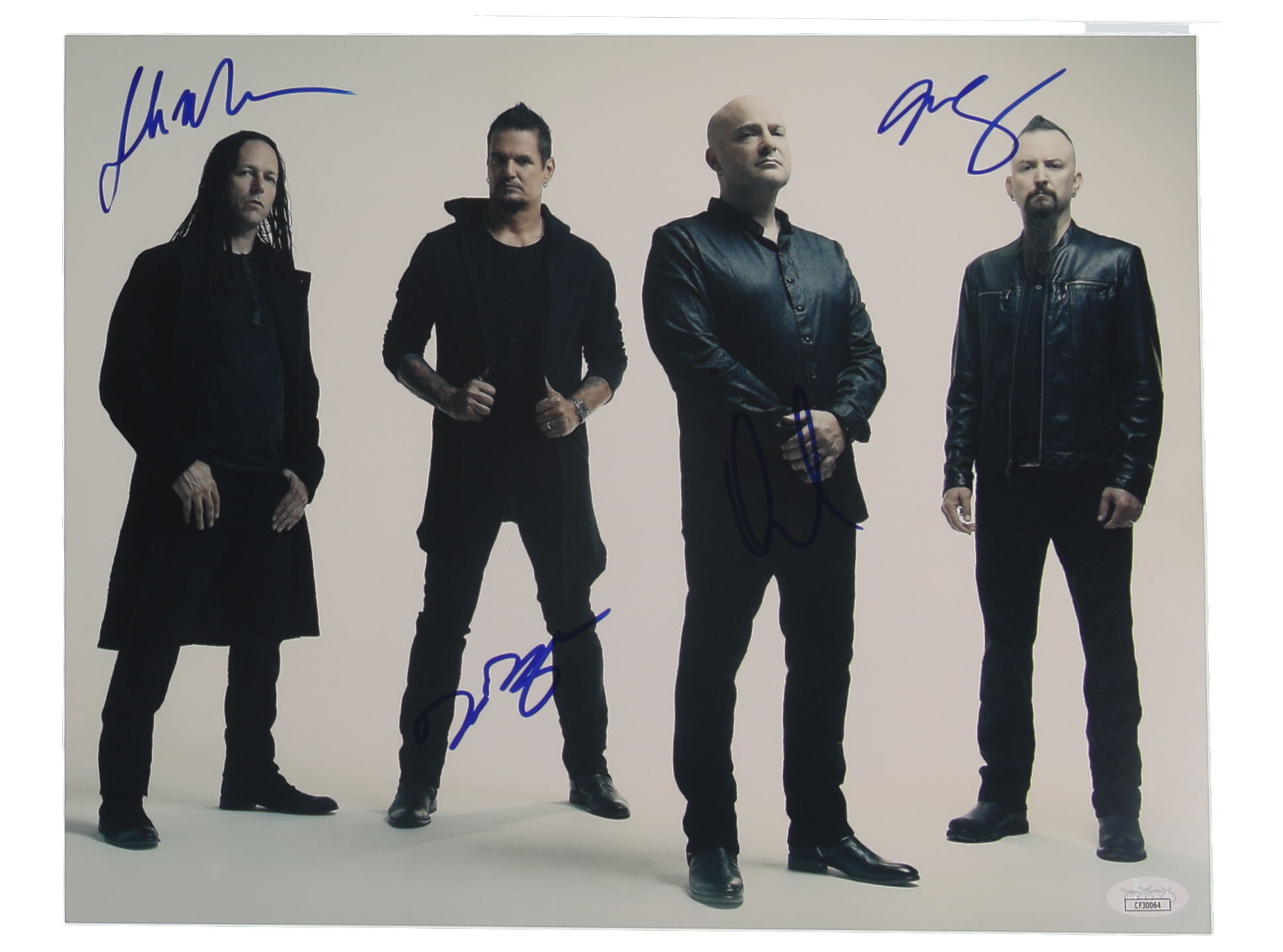 Photo measures approximately 11" x 14" in size and has been hand-signed by David Draiman, Dan Donegan, Mike Wengren, and John Moyer.