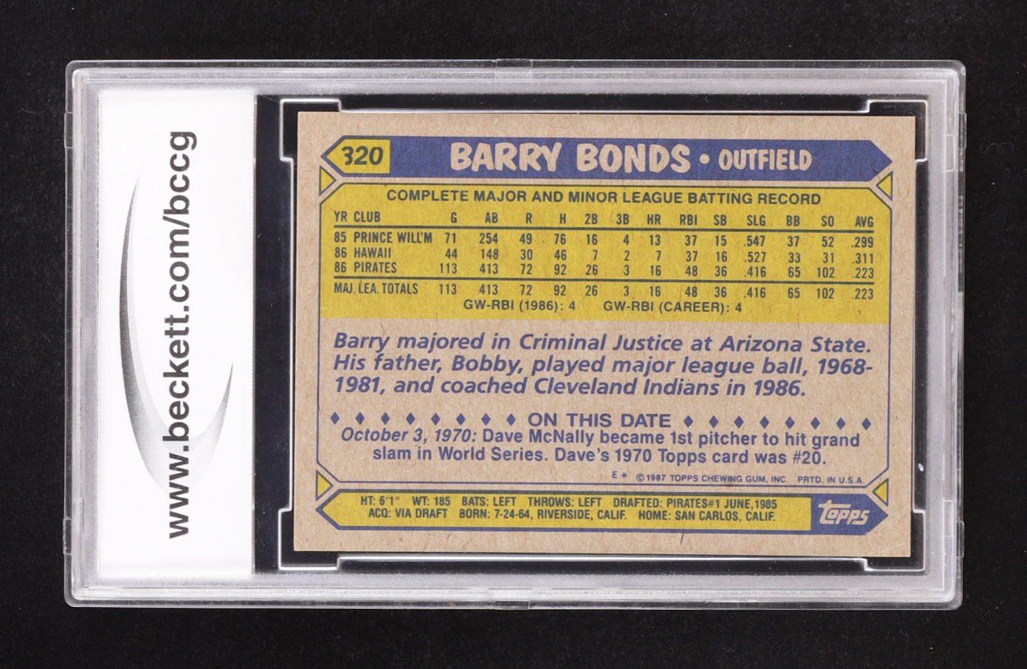 Barry Bonds 1987 Topps #320 RC (BCCG 10)