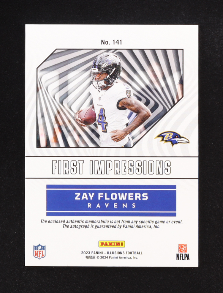 Zay Flowers 2023 Panini Illusions First Impressions Autographed Memorabilia Red #141 RC #057/199