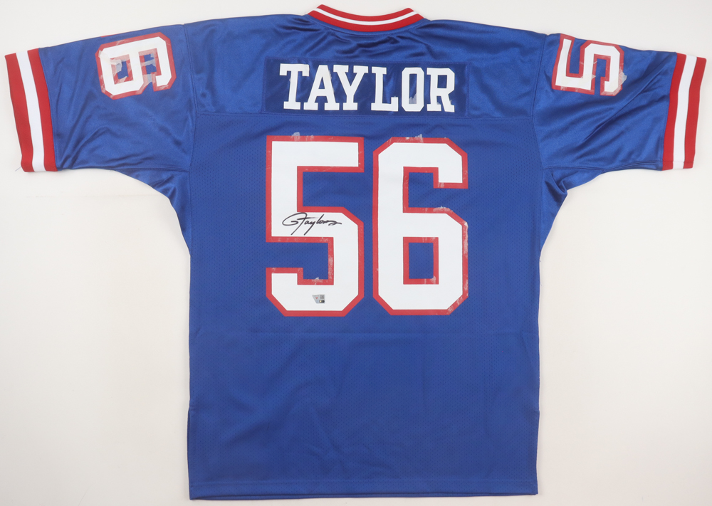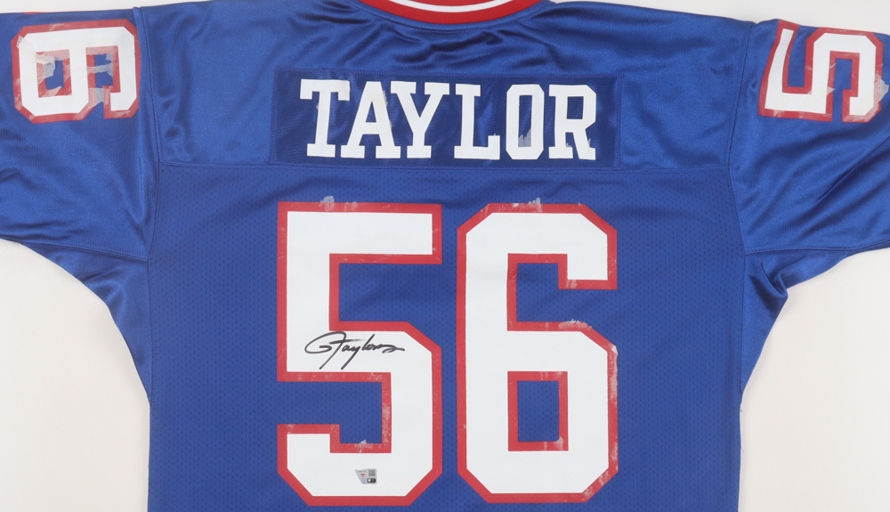 Mitchell & Ness jersey with everything printed on, size 44 (L). Hand-signed by Lawrence Taylor (New York Giants, HOF). Please note, there is residue on the jersey numbers. See photos regarding the condition of the item.