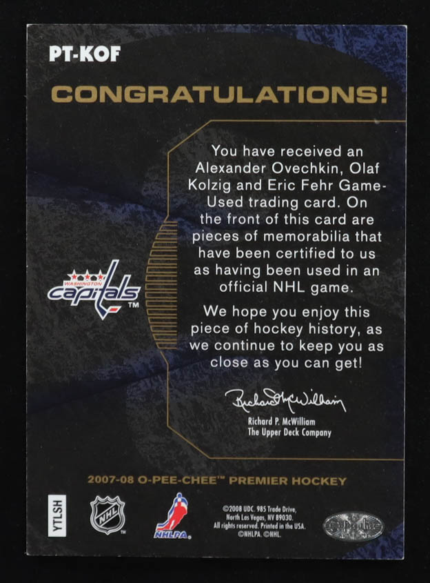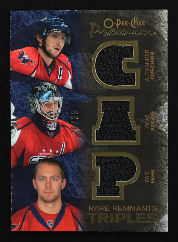 Olaf Kolzig / Alexander Ovechkin / Eric Fehr RC 2007-08 OPC Premier Rare Remnants Triples Gold #PTKOF #26/35