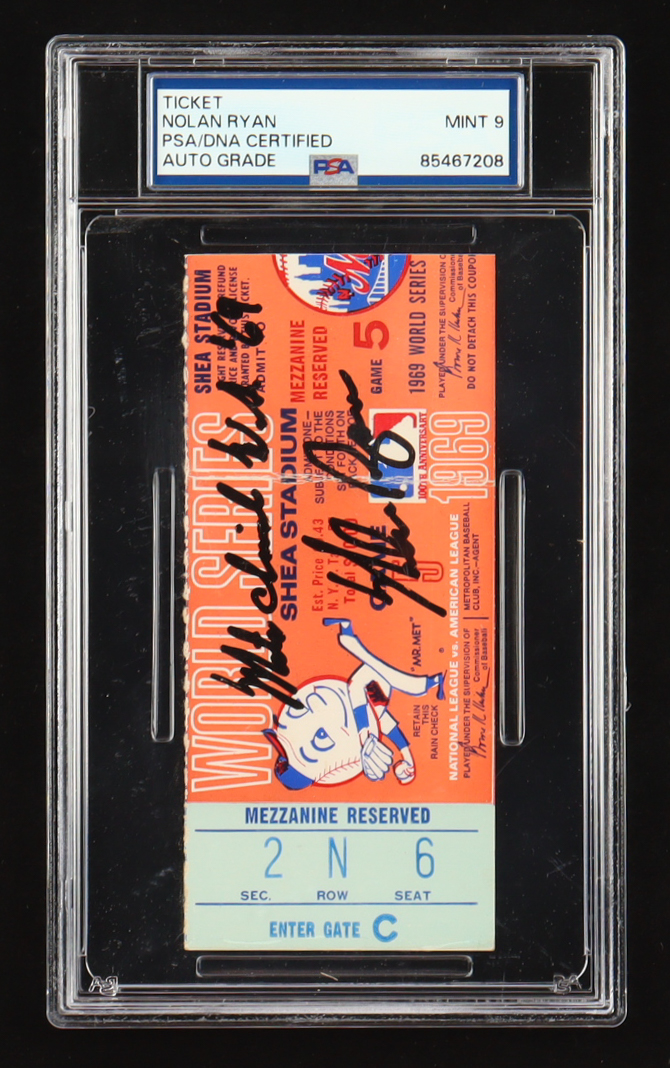 Nolan Ryan Signed 1969 World Championship Season Original Shea Stadium Ticket Inscribed "Mets Clinch Series '69" (PSA | Autograph Grade 9)