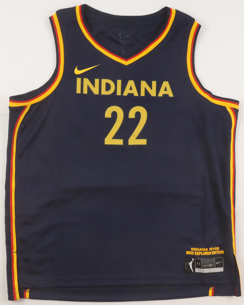 Nike authentic jersey with everything pressed on, size 52. Hand-signed by Caitlin Clark (Indiana Fever).