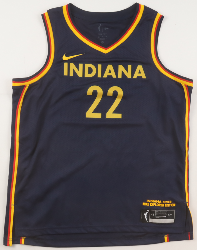 Nike authentic jersey with everything pressed on, size 48. Hand-signed by Caitlin Clark (Indiana Fever).
