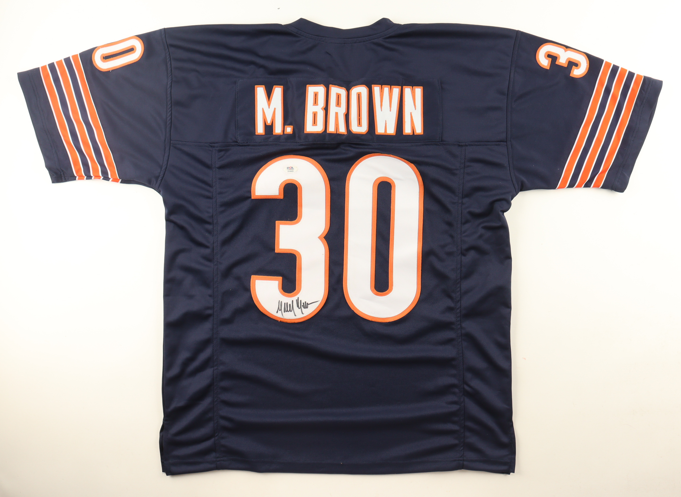 Custom jersey. Everything is sewn on, size XL. Has been hand-signed by Mike Brown. Please note, there is staining around the hologram. See photos regarding the condition of the item.
