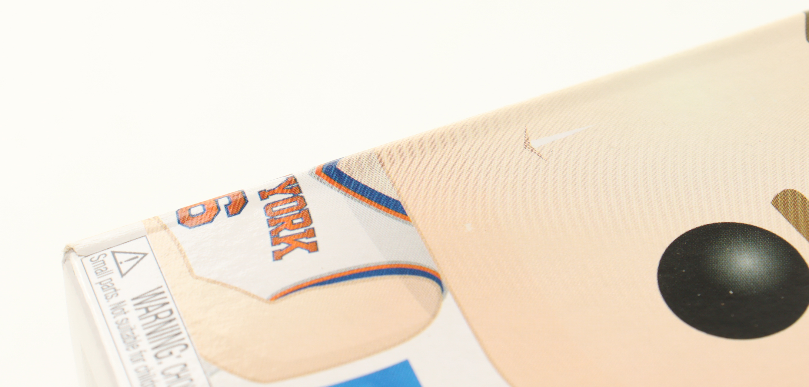 Vinyl figure measures approximately 4" tall and has been hand-signed on the packaging by Kristaps Porzingis (New York Knicks). Please note, there are tears on the corners and there are creases, stains, and scuffing throughout the packaging.