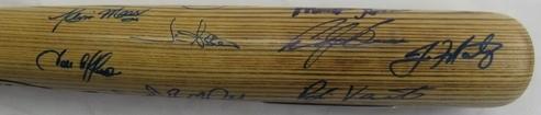 Other names featured on the bat include Robin Ventura, Tino Martinez, Tom Zeile, Jim Abbott, Dante Bichette, and Marquis Grissom!