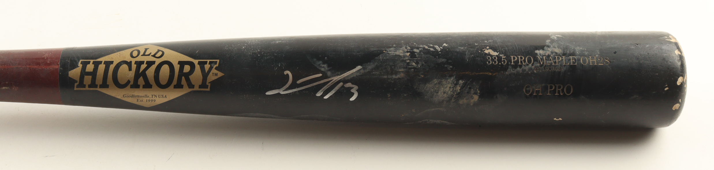 Old Hickory Pro Maple Baseball Bat. Hand-signed by Junior Caminero (Tampa Bay Rays). Please note, the bat has been game-used by an unknown player. Please see photos for details regarding the condition of the bat.