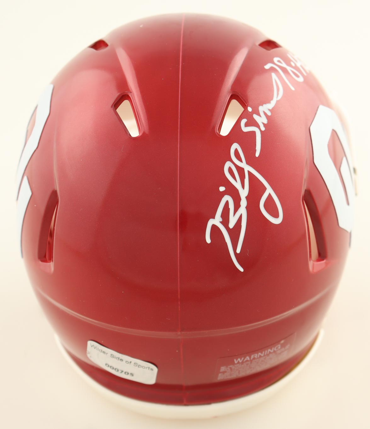 Riddell Oklahoma Sooners Speed mini helmet. Hand-signed and inscribed by Billy Sims.