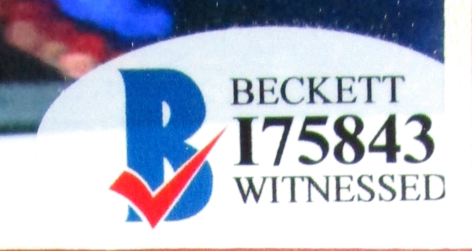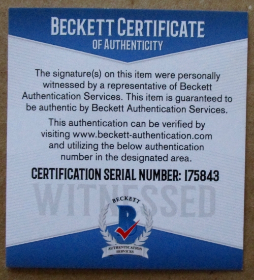 The lot / autograph(s) includes an official Beckett Authentication Services serially numbered hologram and matching COA for authenticity purposes. The signing of this item was witnessed by Beckett
