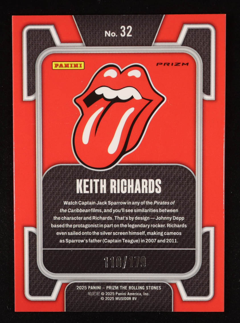 Keith Richards 2025 Panini Prizm The Rolling Stones Prizms Black and Red Checker #32 #110/179